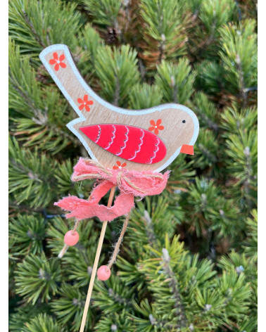 Vtáčik zápich Cena 0,65 € Drevený vtáčik na paličke, pestro dozdobený, pekný pichnúť do kvetináča ku kvietku alebo do dekorácie. Výška 32 cm.