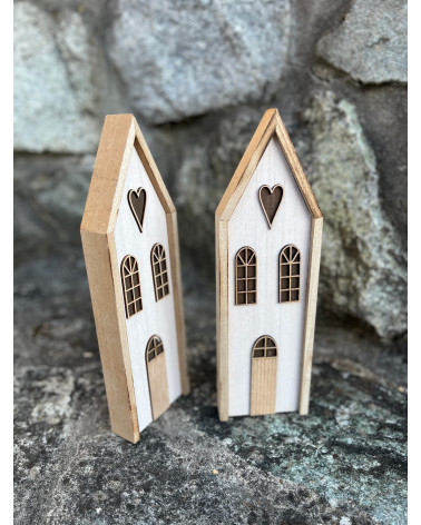 Domček natur Cena 6,80 € Drevený domček v jemne béžovej farbe so srdiečkom vhodný na celoročnú dekoráciu. Výška 29 cm, dĺžka 9 cm, šírka 3 cm.