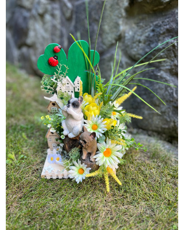 Ikebana s buldočkami Cena 26,00 € Ikebana pre milovníkov buldočkov na drevenom základe so štvorlístkom a s lienkami. Dekorácia napríklad na tmavú komodu. Výška 27 cm, dĺžka 25...