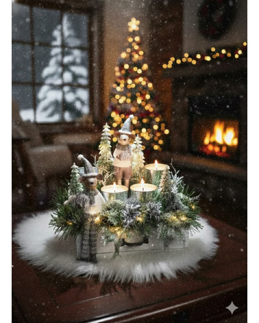 Adventný svietnik s myškami Cena 74,00 € Rozprávkový adventný svietnik s vianočnými myškami, je robený do dreveného šuflíka plného zamrznutej zelene a tráv. Súčasťou svietnika sú...