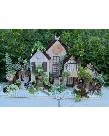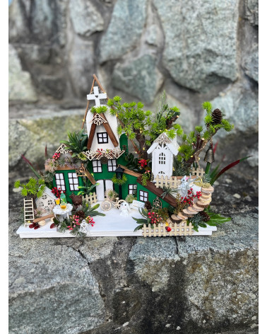 Dedinka v zelenom Cena 59,00 € Dedinka s ručne vyrábanými domčekmi, s dreveným schodiskom, s kovovým zvončekom, so stolíkom a s množstvom doplnkov. Dedinka je podsvietená na dve...