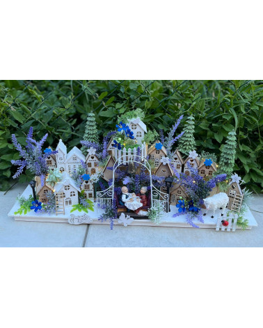 Dedinka s fialovým dievčatkom Cena 48,00 € Dedinka s drevenými domčekmi, s fialovým dievčatkom, s balkónom, so stromami a s dreveným plotom. Dedinka je podsvietená. Dĺžka 24 cm, šírka 18...