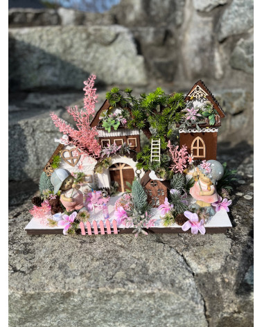 Dedinka babka s dedkom Cena 59,00 € Dedinka robená do drevenej oválnej nádoby s babkou a s dedkom, ako si spolu pijú kávičku. Dedinka je plná drevených domčekov, s množstvom doplnkov...
