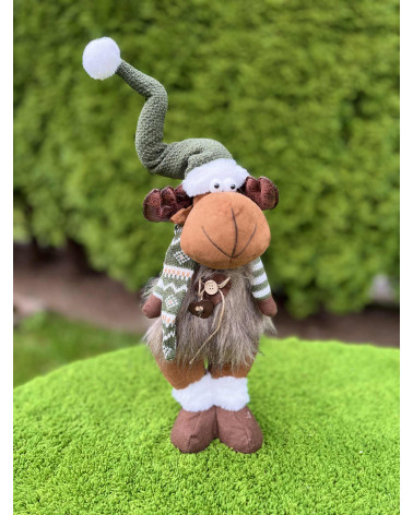 Jeleň sediaci Cena 14,95 € Sediaci jeleň s krásnymi parohami a so štrikovaným šálom, krásna dekorácia na parapetu, komódu či stolík. Materiál: polystyrén, textil...