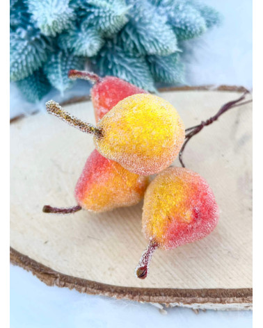 Pocukrované hrušky Cena 1,35 € Trs štyroch pocukrovaných hrušiek ideálnych na ďalšie tvorenie. Dĺžka trsu je 13 cm, hruška má priemer 3 cm.