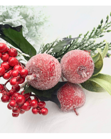 Vetvička pocukrované jabĺčka Cena 1,60 € Pekná vetvička červenej farby s troma pocukrovanými jabĺčkami, s jemnými bobuľkami a so zeleňou. Dĺžka 23 cm.