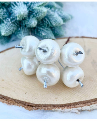 Perleťové jabĺčka Cena 0,95 € Biele perleťové jabĺčka na výrobu dekorácií. v trse je 6 kusov, dĺžka trsu je 10 cm, priemer jabĺčka je 2,5 cm.