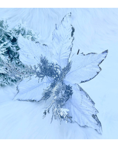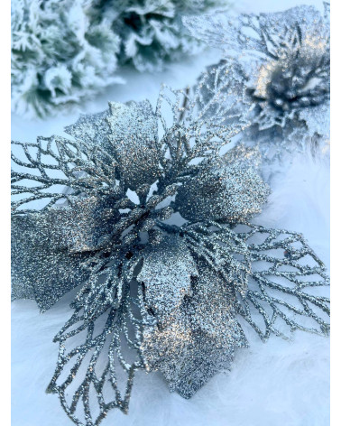 Ligotavý kvet strieborný Cena 1,00 € Prudko ligotavý strieborný kvet na drôte, vhodný na výzdobu vianočného stromčeka, vianočnej ikebany alebo len tak do čečiny. Priemer kvetu je 17...