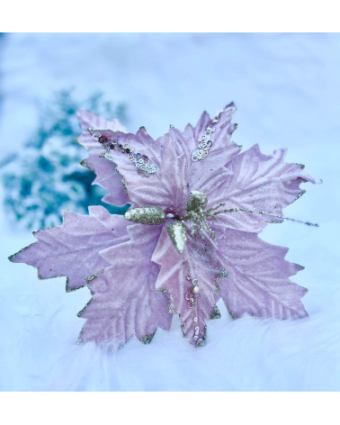 Vianočná ruža ružová Cena 2,45 € Krásna vianočná ruža v ružovo zamatovej farbe so zlatým stredom a zlatým ligotavým lemovaním. Kvety sú vhodné do vianočného stromčeka, vianočnej...