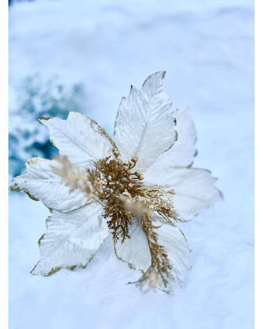 Vianočná ruža smotanová Cena 2,45 € Krásna vianočná ruža v smotanovo zamatovej farbe so zlatým stredom a zlatým ligotavým lemovaním. Kvety sú vhodné do vianočného stromčeka,...