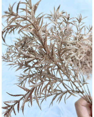 Lístky šampaň Cena 1,95 € Trs ligotavých lístkov v šampanskej farbe, vhodné aj do ikebany, vázy, či aj do vianočného stromčeka. Dĺžka trsu je 37 cm, 5 stoniek.