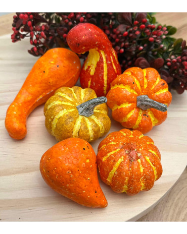 Tekvičky Cena 1,45 € Sada tekvičiek na drôtiku, perfektné na ďalšie dekorovanie. V sada je 6 kusov. Výška tekvičky je 3,5 cm, priemer tekvičky je 3,5 cm.