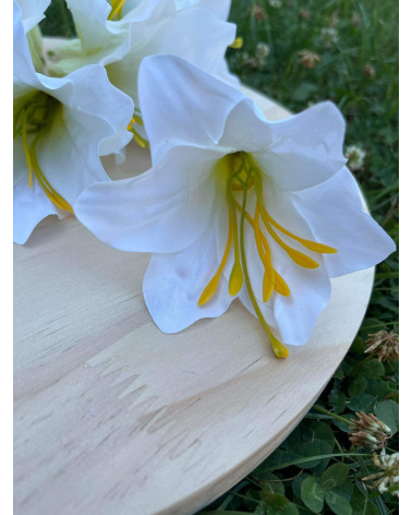 Hlavička bielej ľaľie, priemer 9 cm, dĺžka kalicha 10 cm.