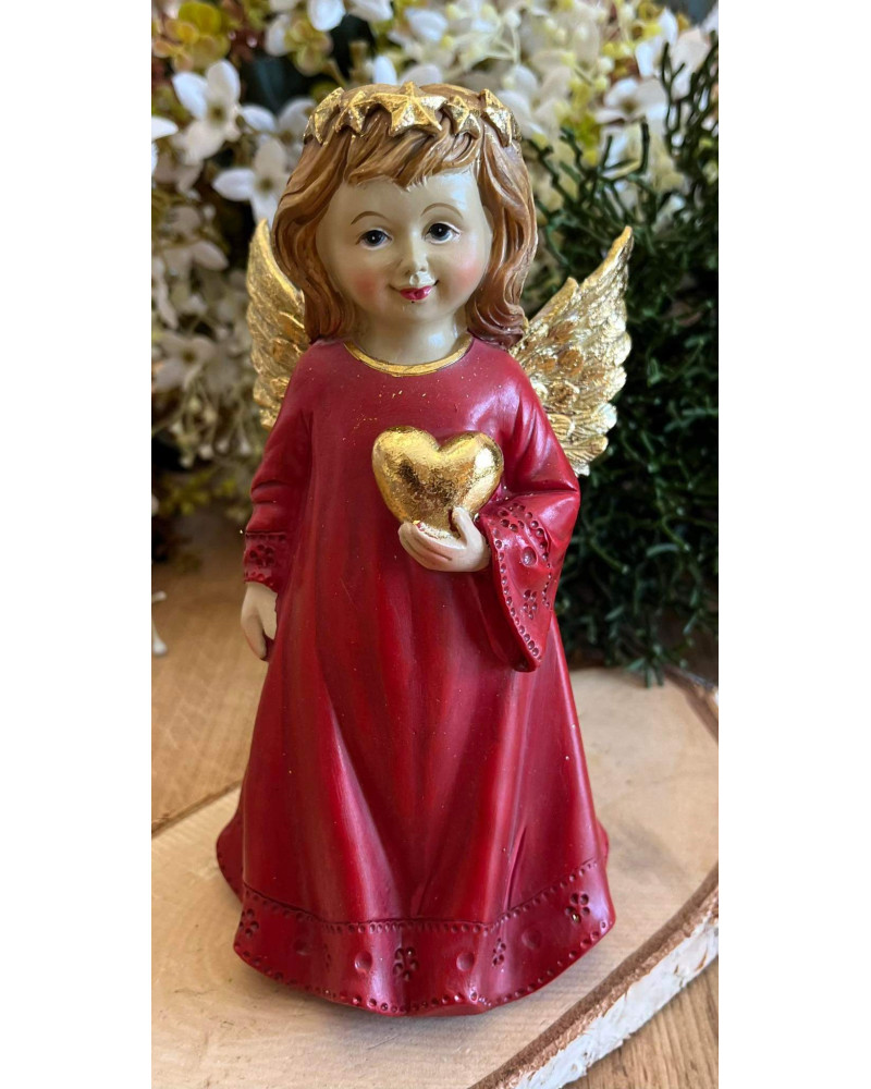 Anjel so zlatým srdcom a zlatým venčekom vo vlasoch a so zlatými krídlami.