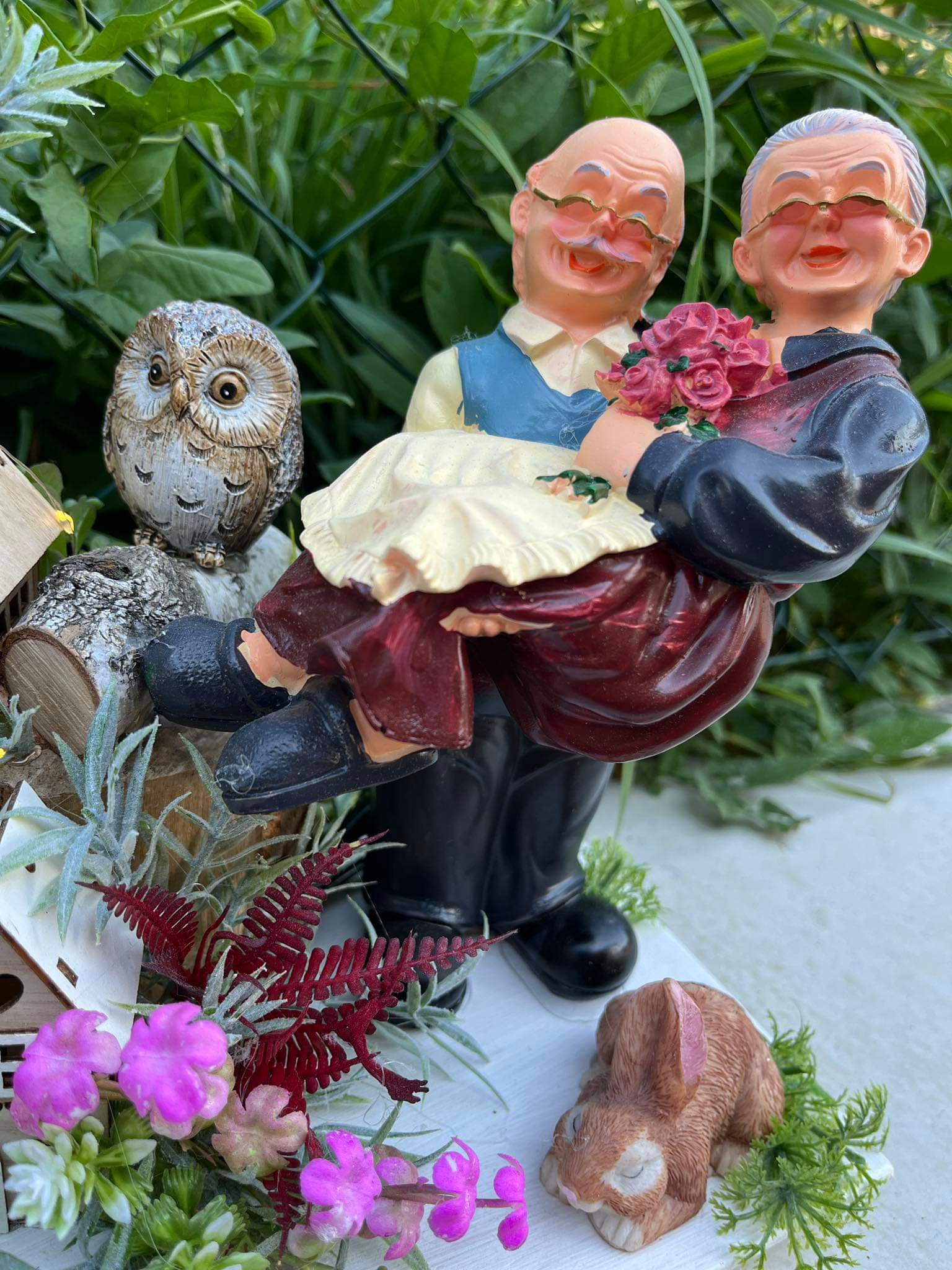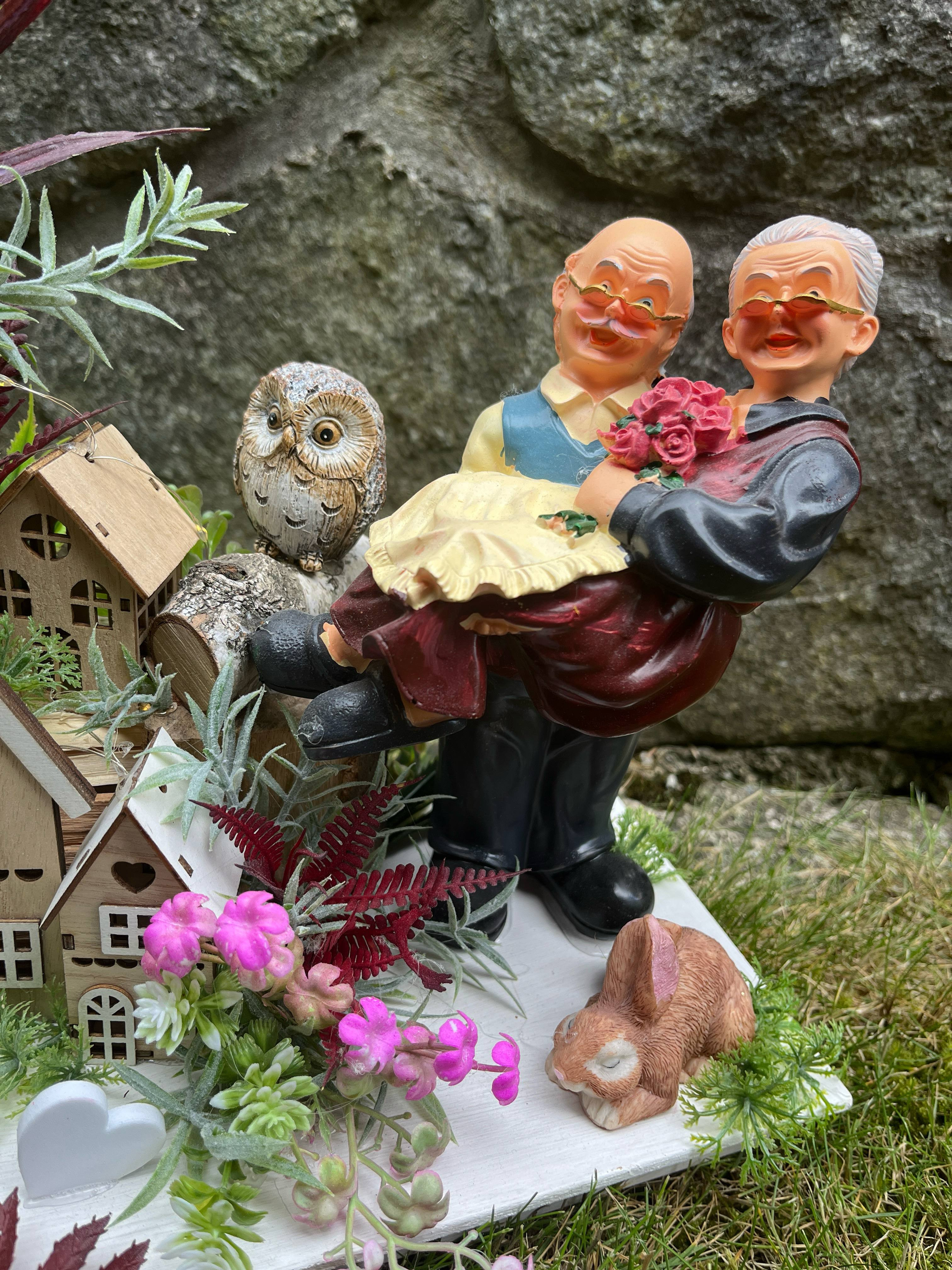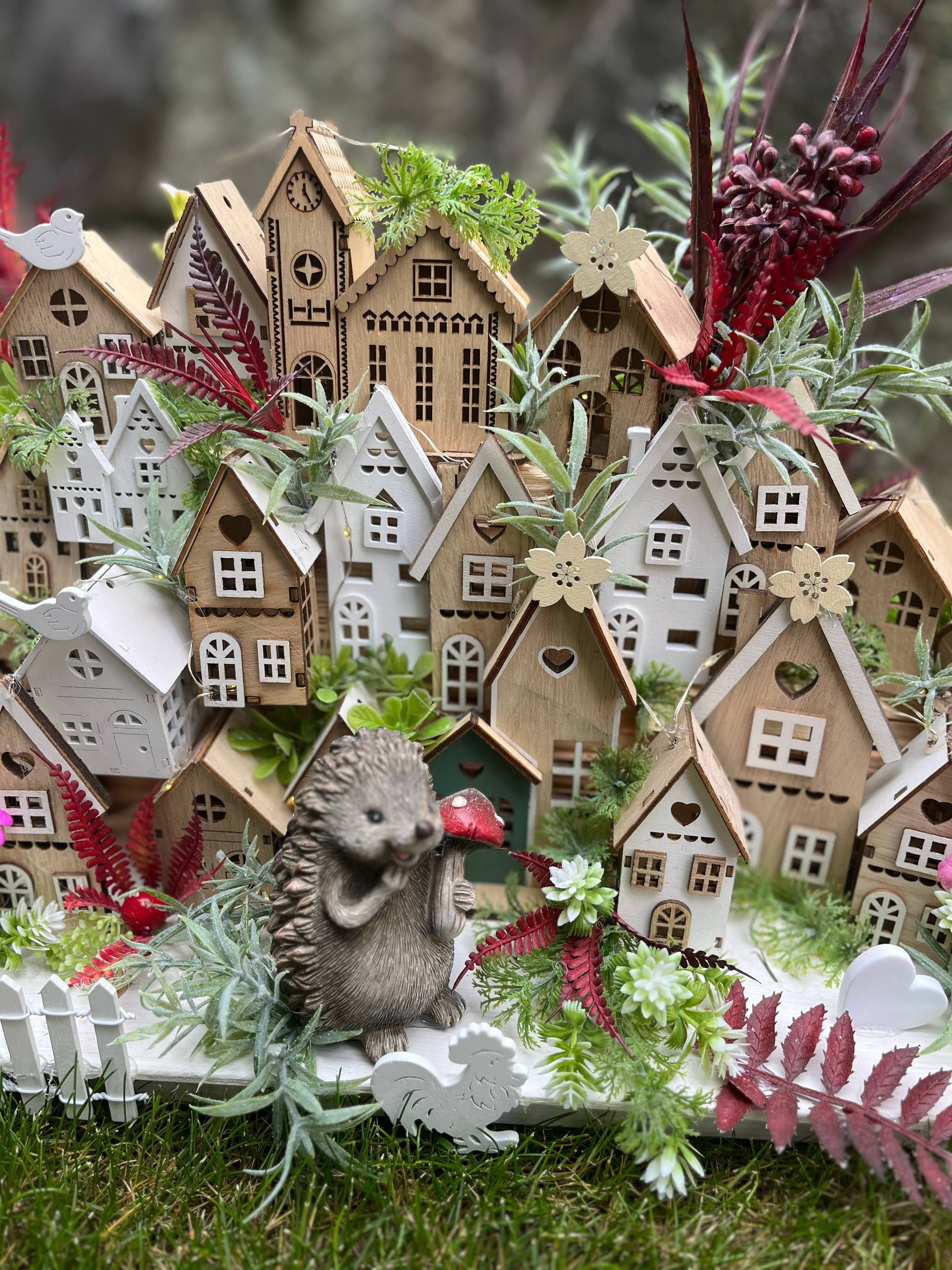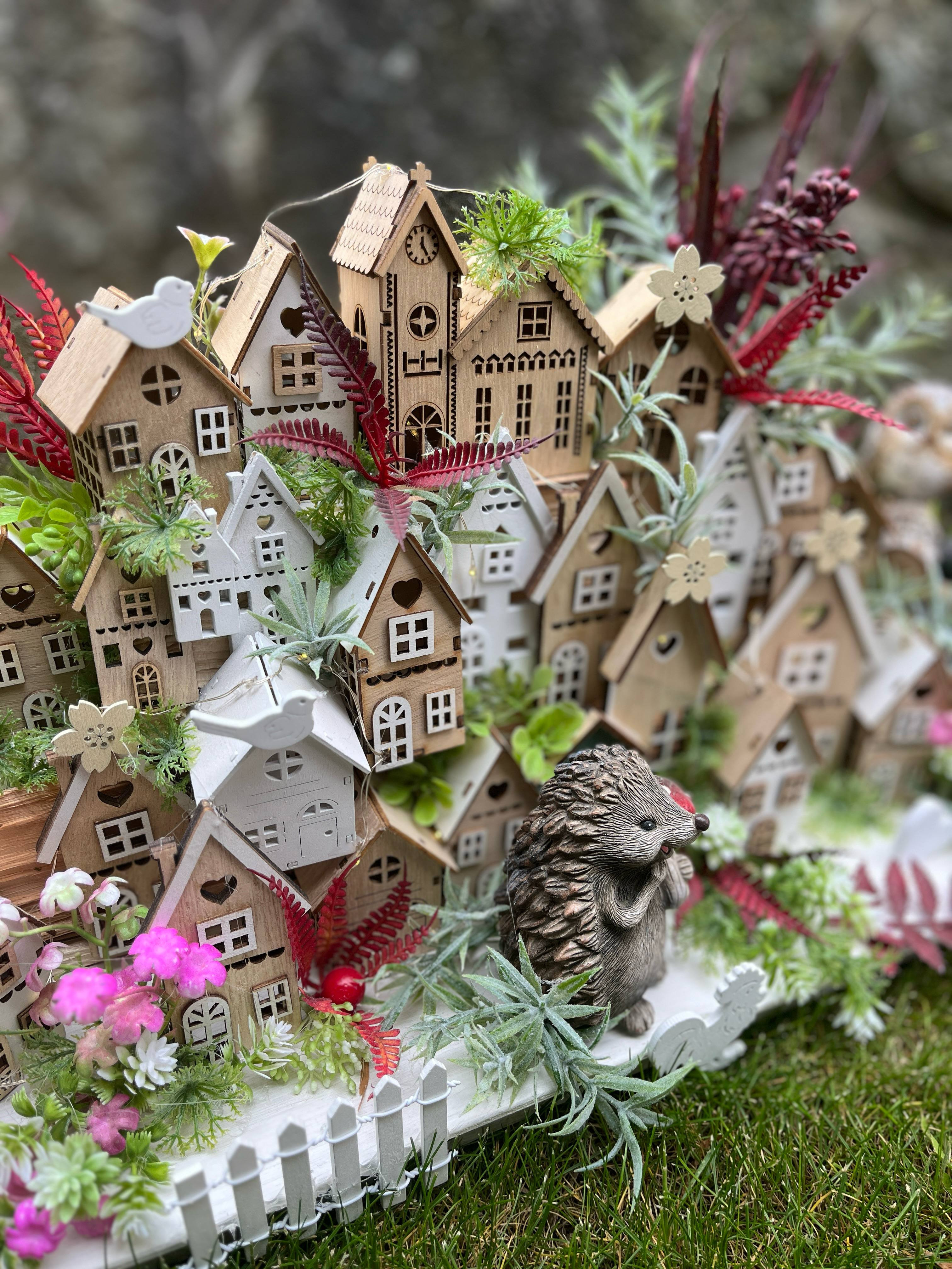 Veľká bohato zdobená dedinka plná drevených domčekov s keramickým ježkom aj zajkom, s chutnými dedkom a babkou.