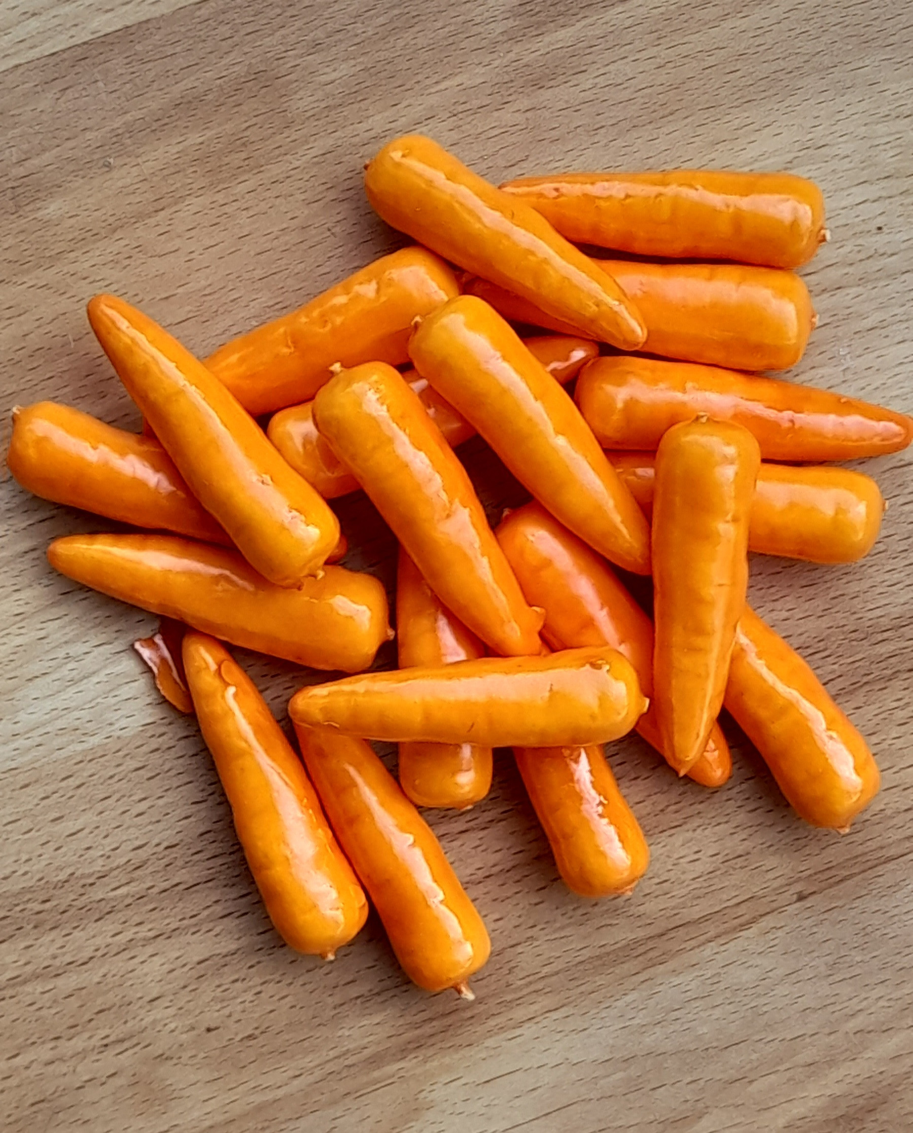 Umelé mrkvičky, vhodné na výrobu dekorácii, v balení je 20 kusov, dĺžka mrkvičky je 5,5 cm