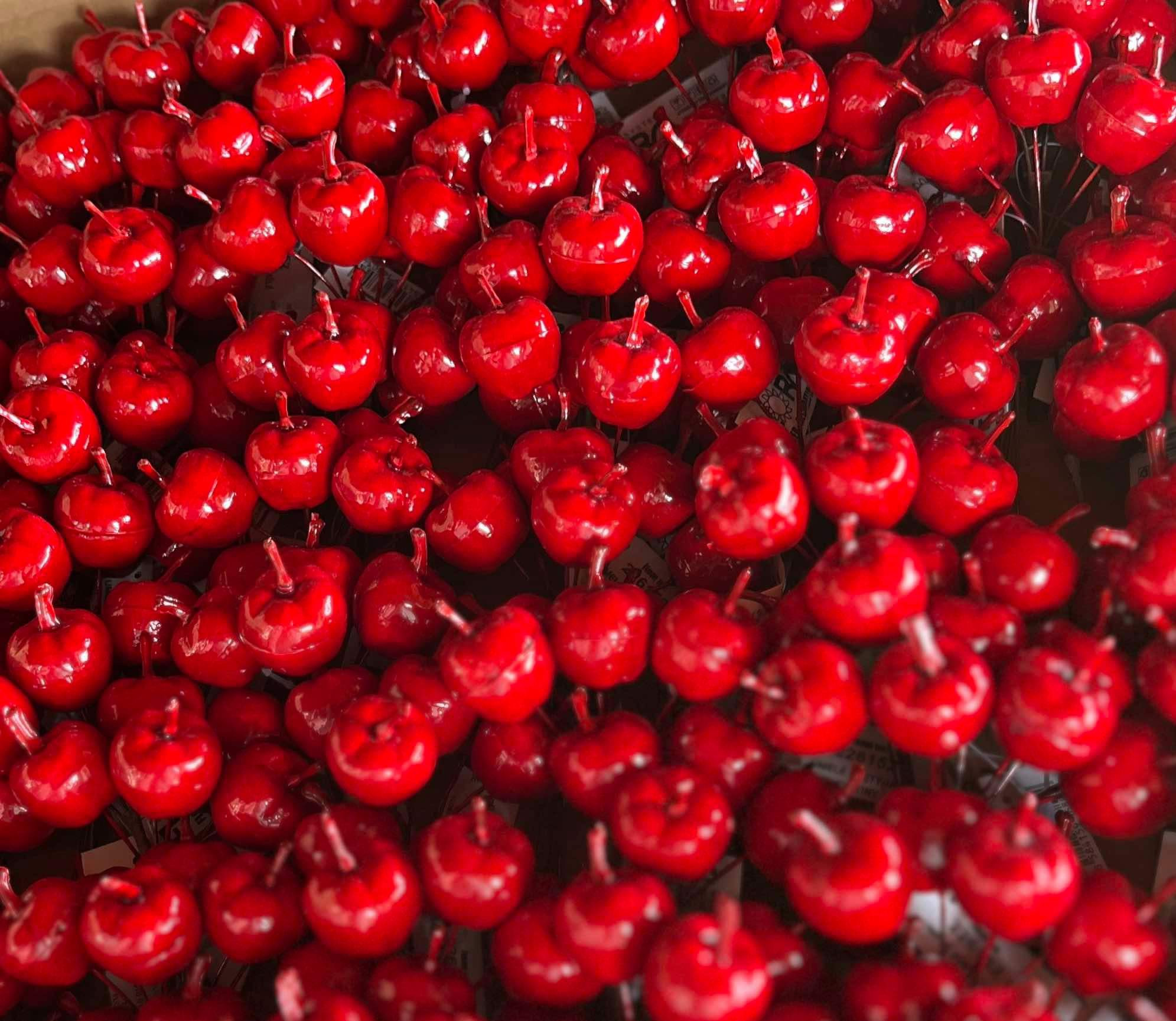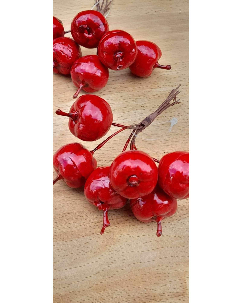 Trs meších umelých jabĺčok, vhodné k ďalšiemu dekorovaniu. V trse je 6 kusov jabĺčok, výška 3 cm.