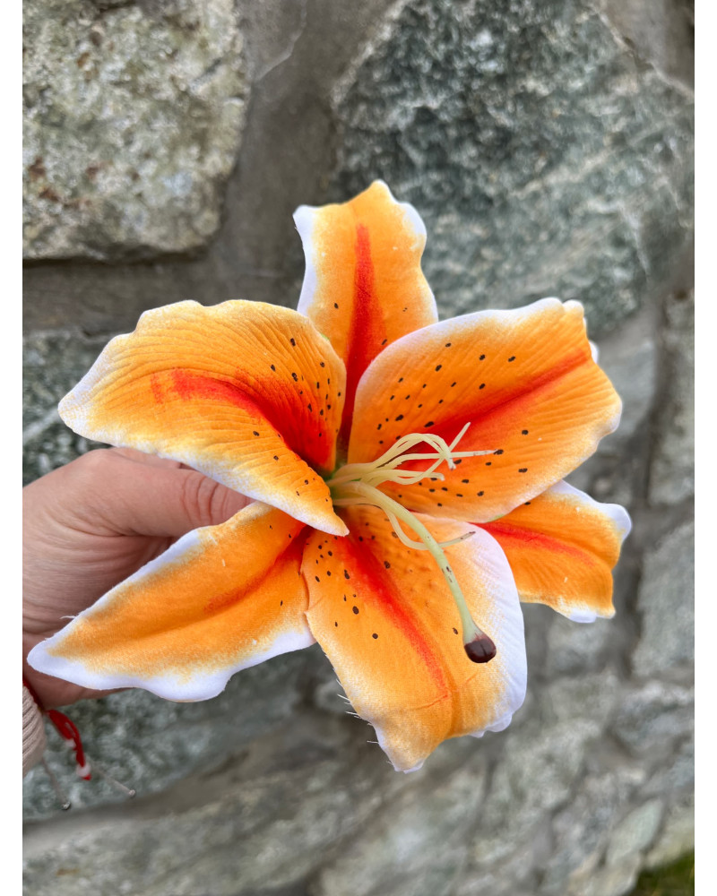 Hlavička rozkvitnutej oranžovej ľaľie.