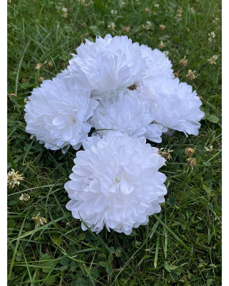 Hlavička bielej chryzantémy, priemer hlavičky 10 cm.