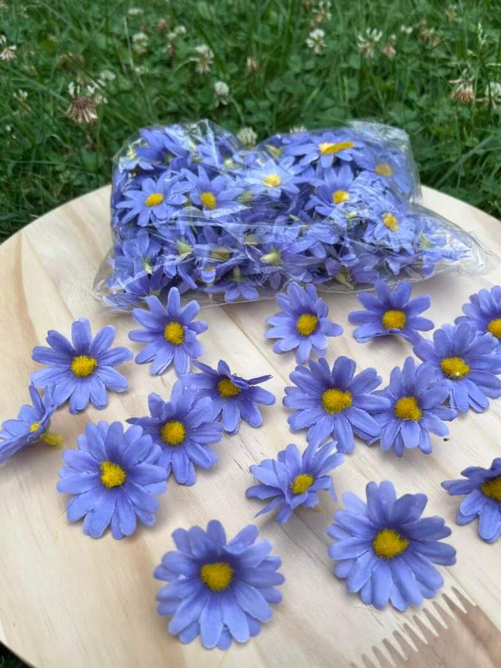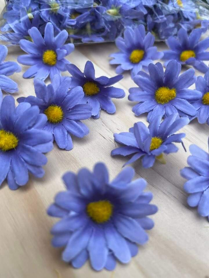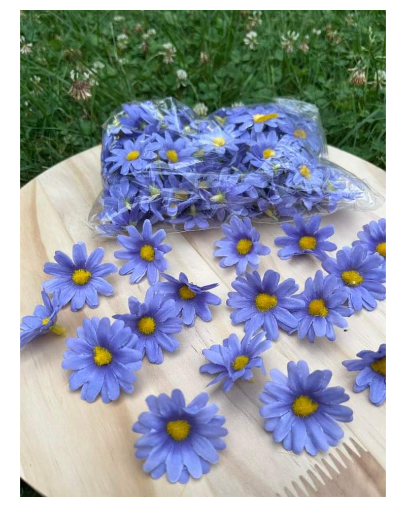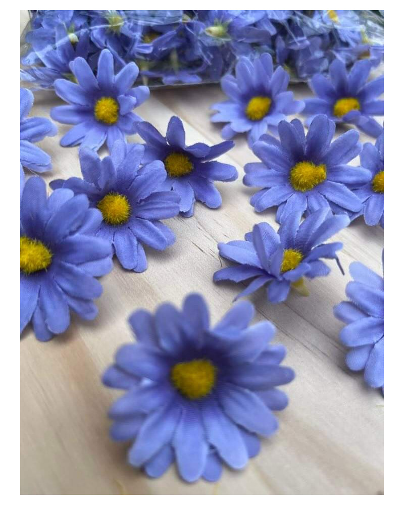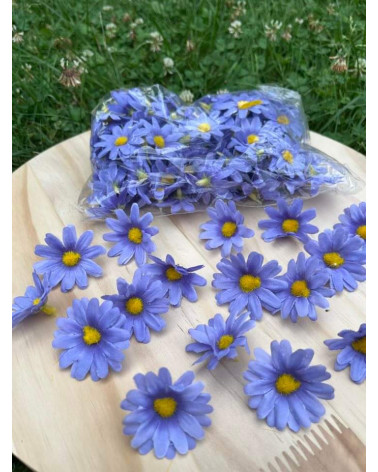 Hlavičky modrých margarétok o priemere 4 cm. V sade je 100 kusov.