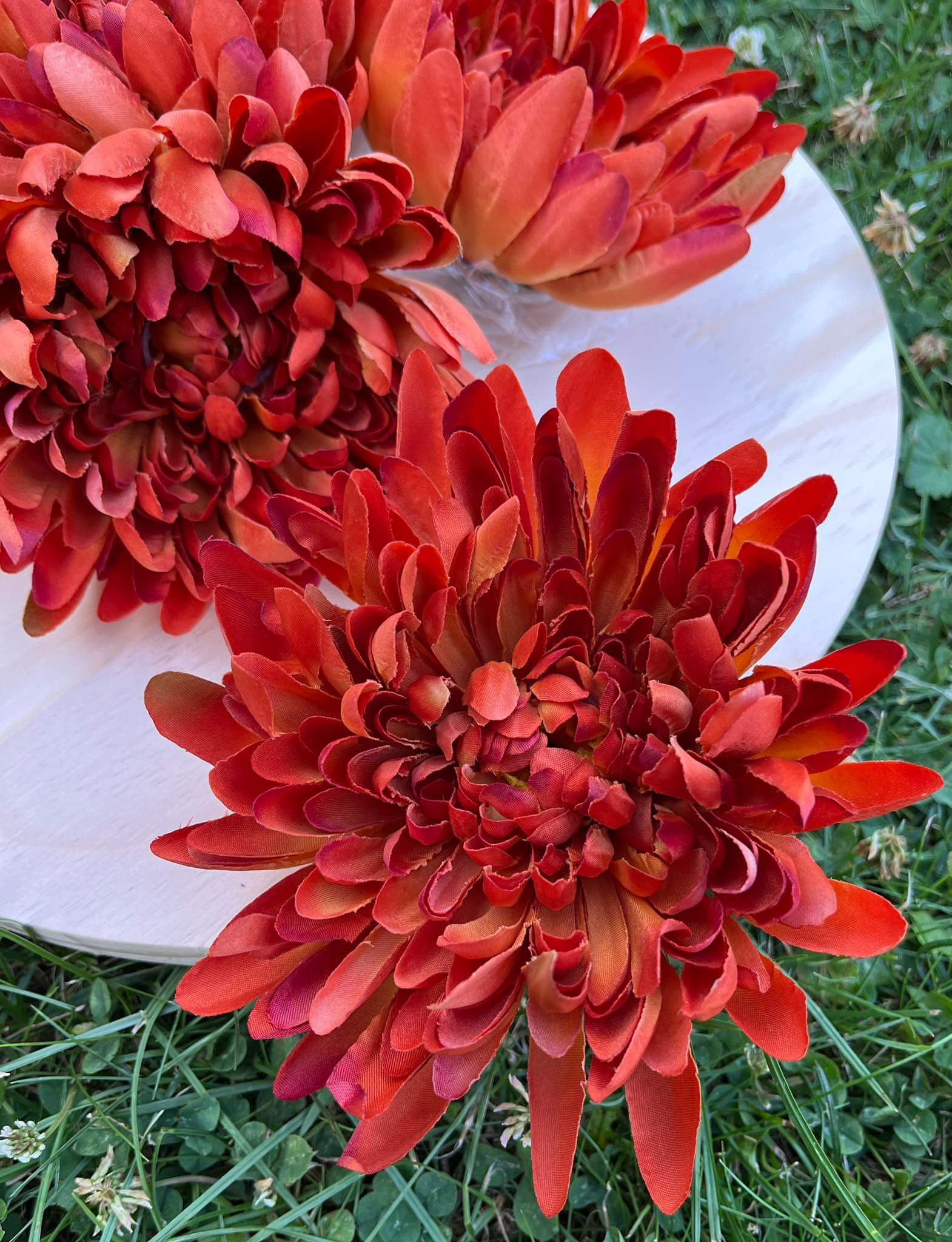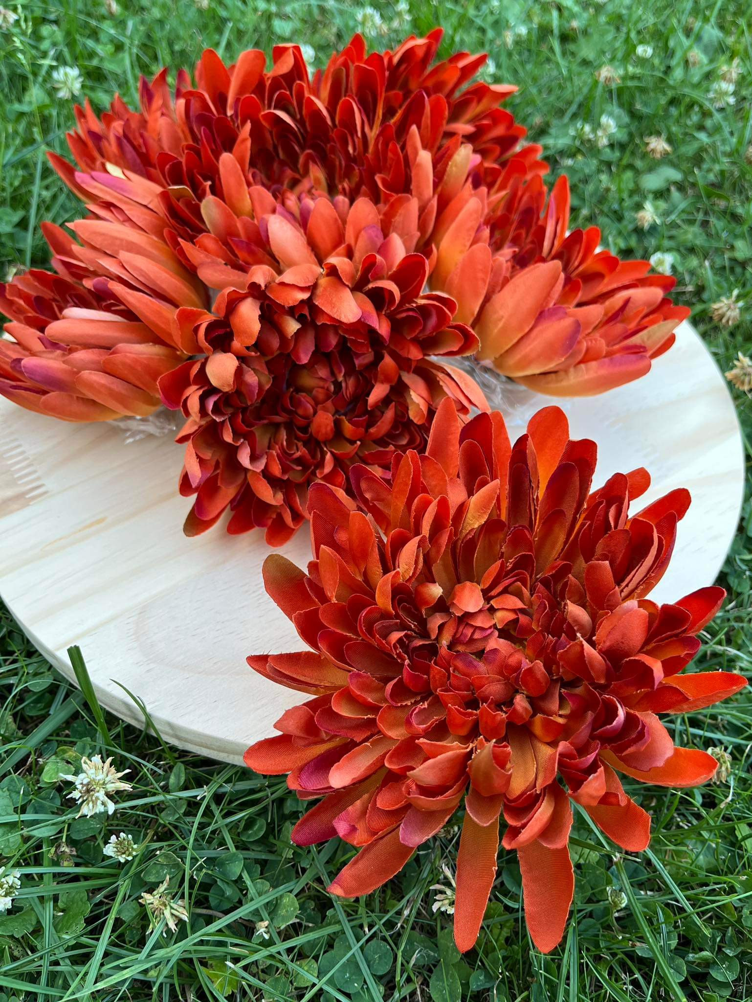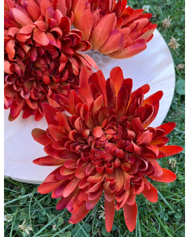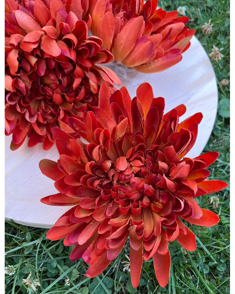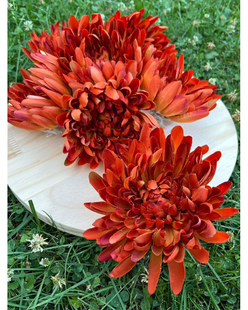 Hlavička strapatej chryzantémy v oranžovej farbe o priemere 13 cm.