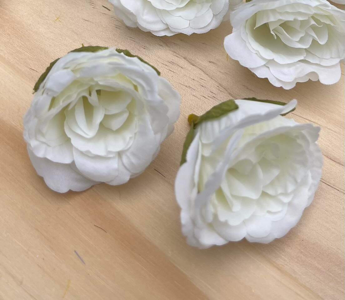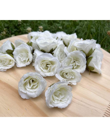 Hlavička bielej ružičky o priemere 5 cm.