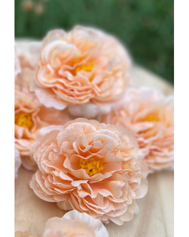 Hlavička marhuľovej dálie o priemere 9 cm.