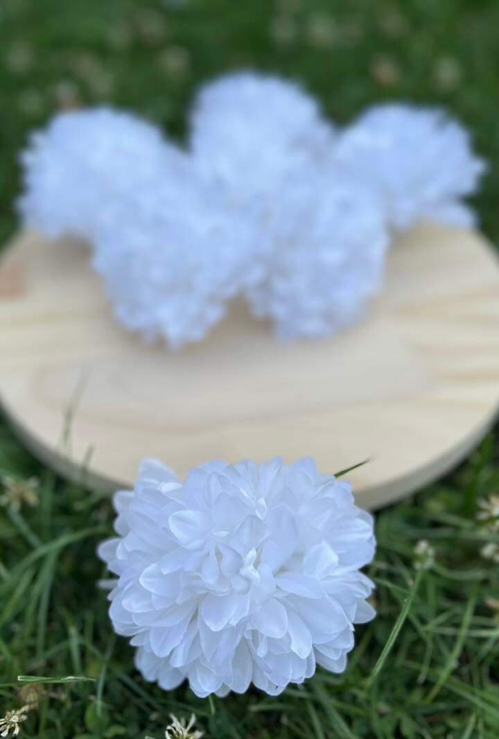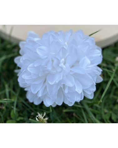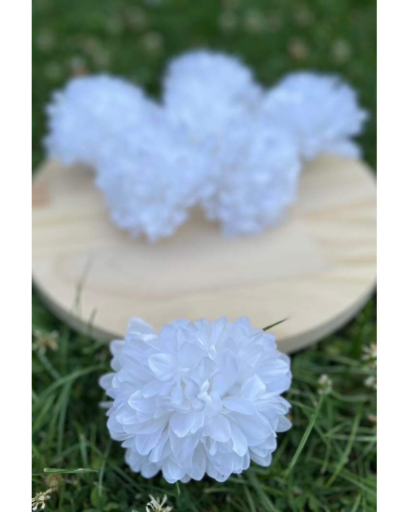 Hlavička bielej chryzantémy o priemere 9 cm.