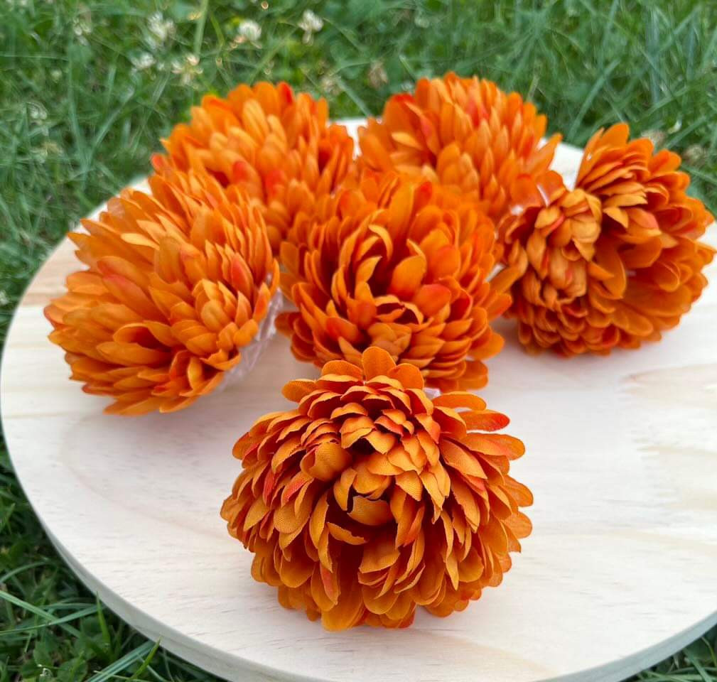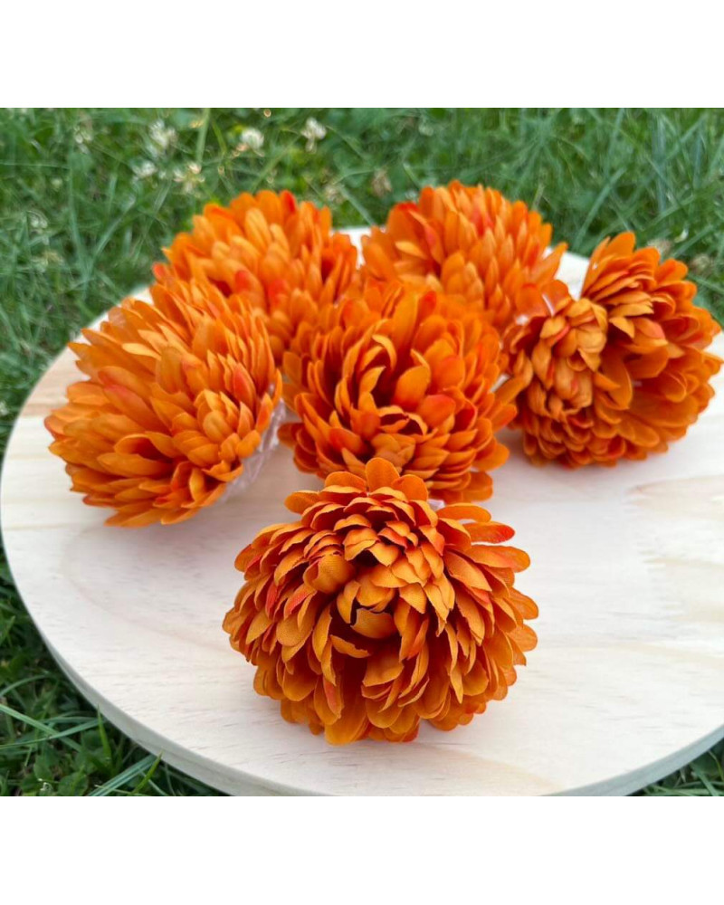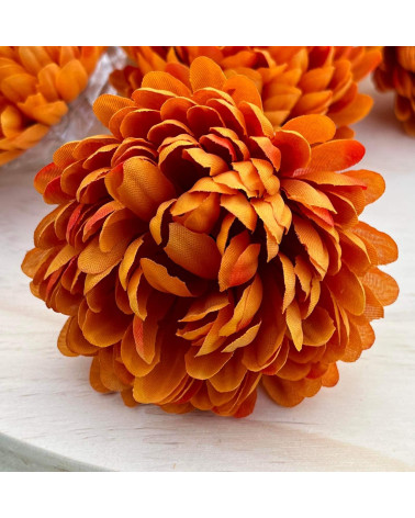 Hlavička oranžovej chryzantémy o priemere 9 cm.