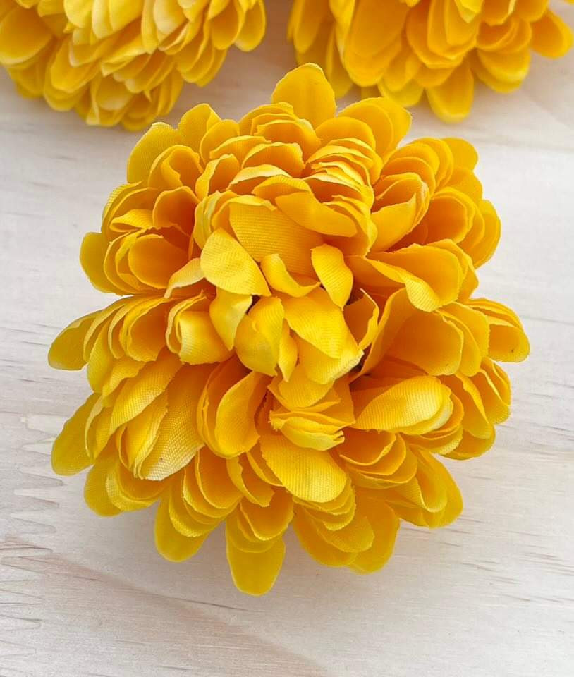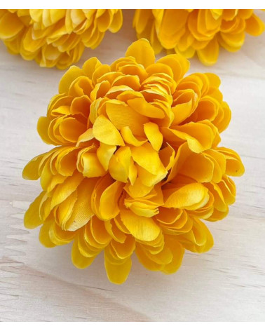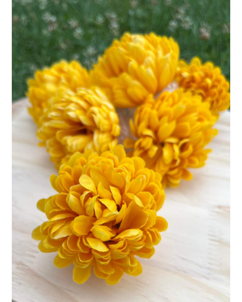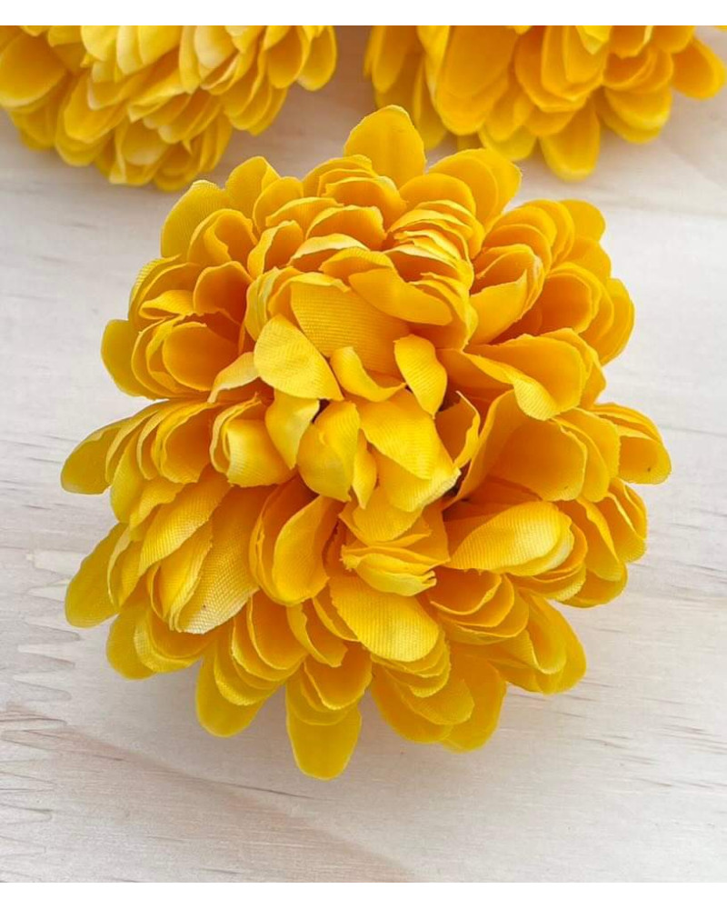 Hlavička žltej chryzantémy o priemere 9 cm.