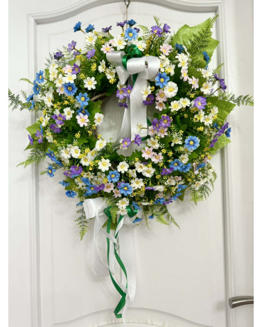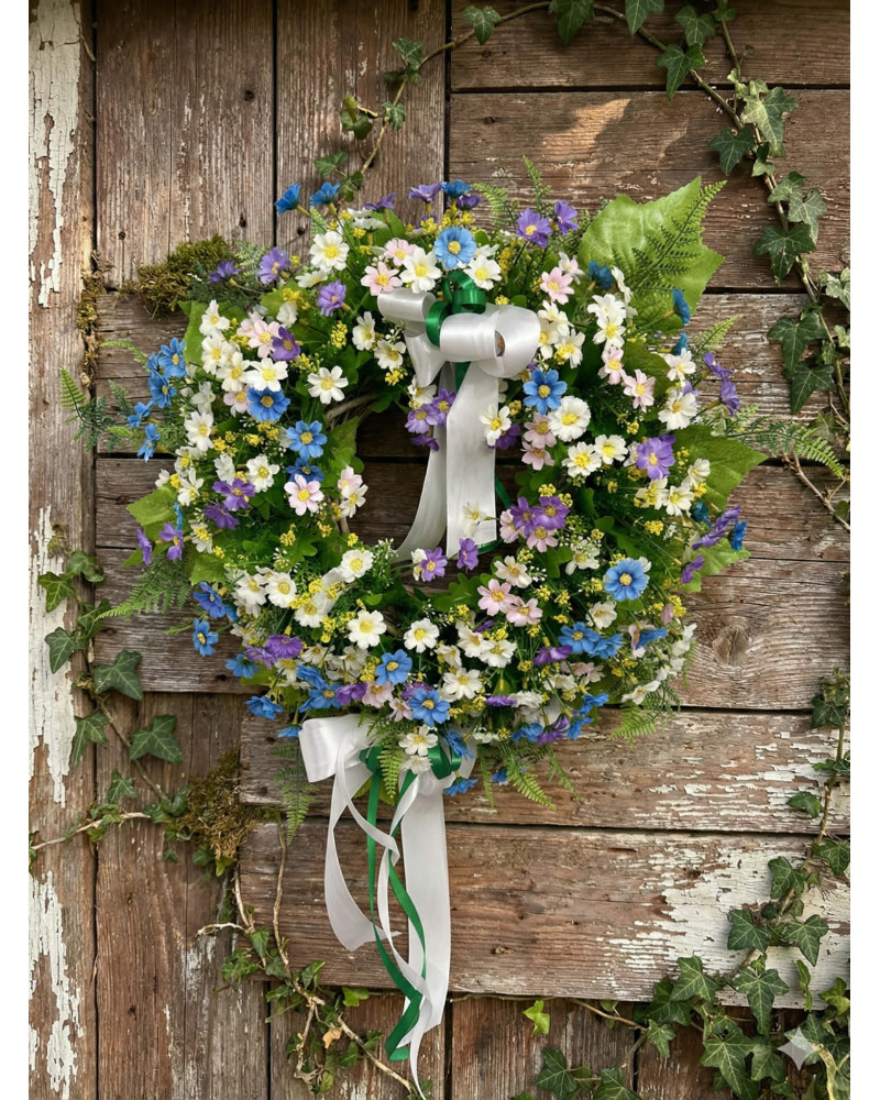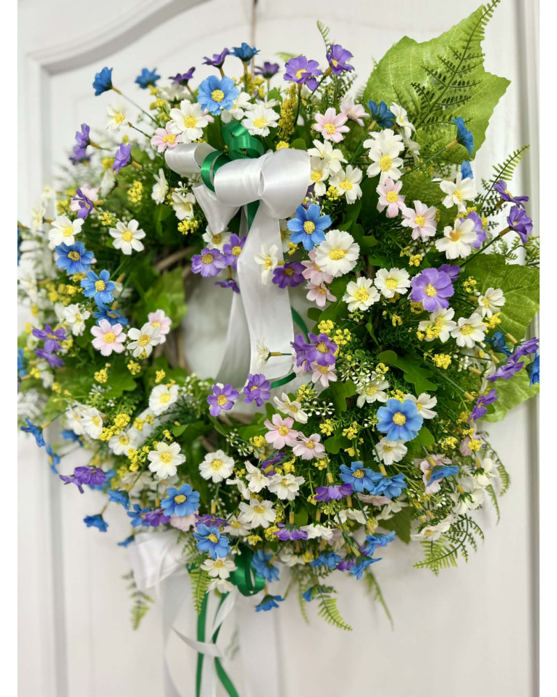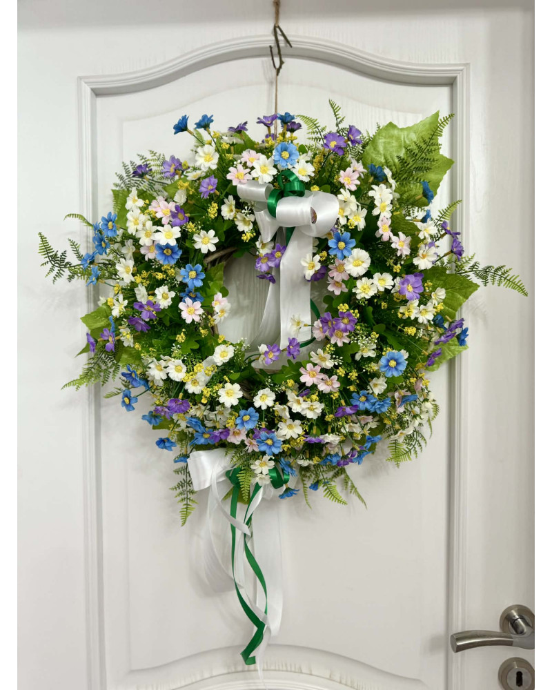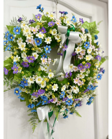 Tento fešák je robený z drobných margarétkou v bielo modro fialovej farbe.