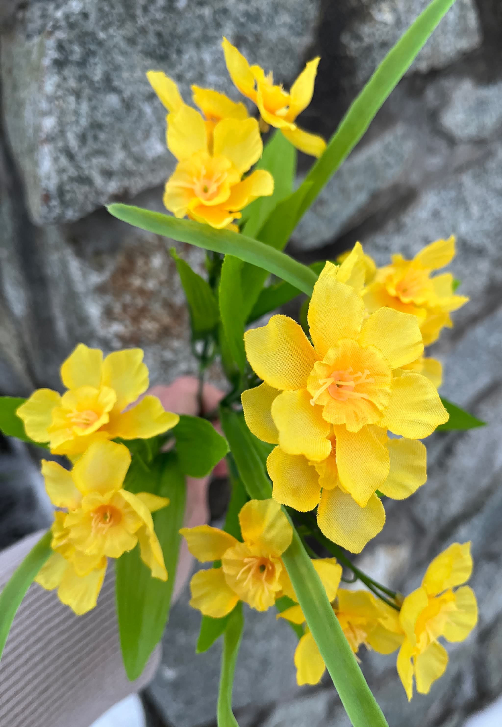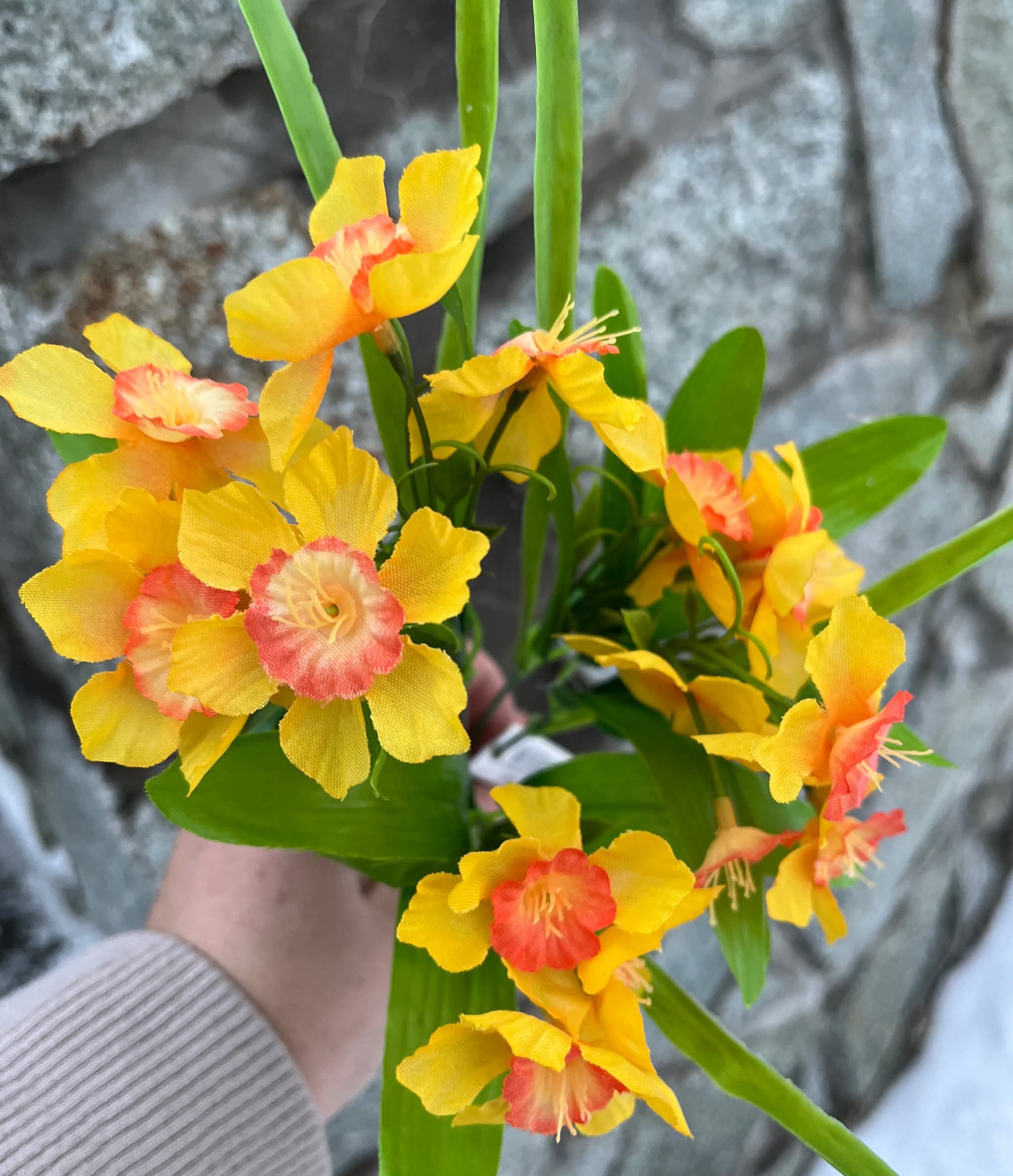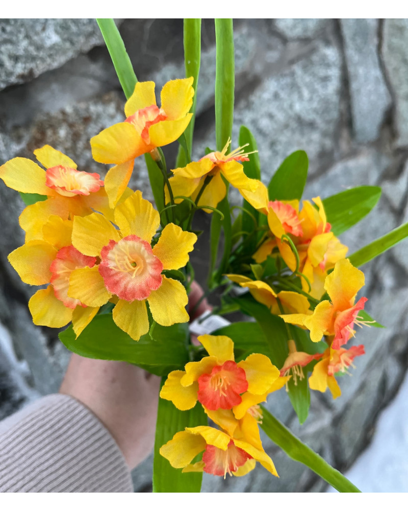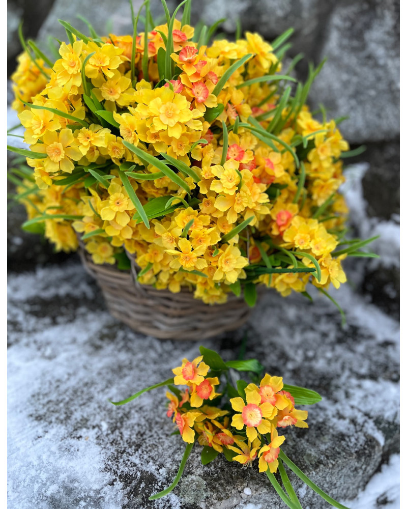 Kytička drobných narcisiek v žltej alebo v žlto oranžovej farbe.