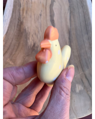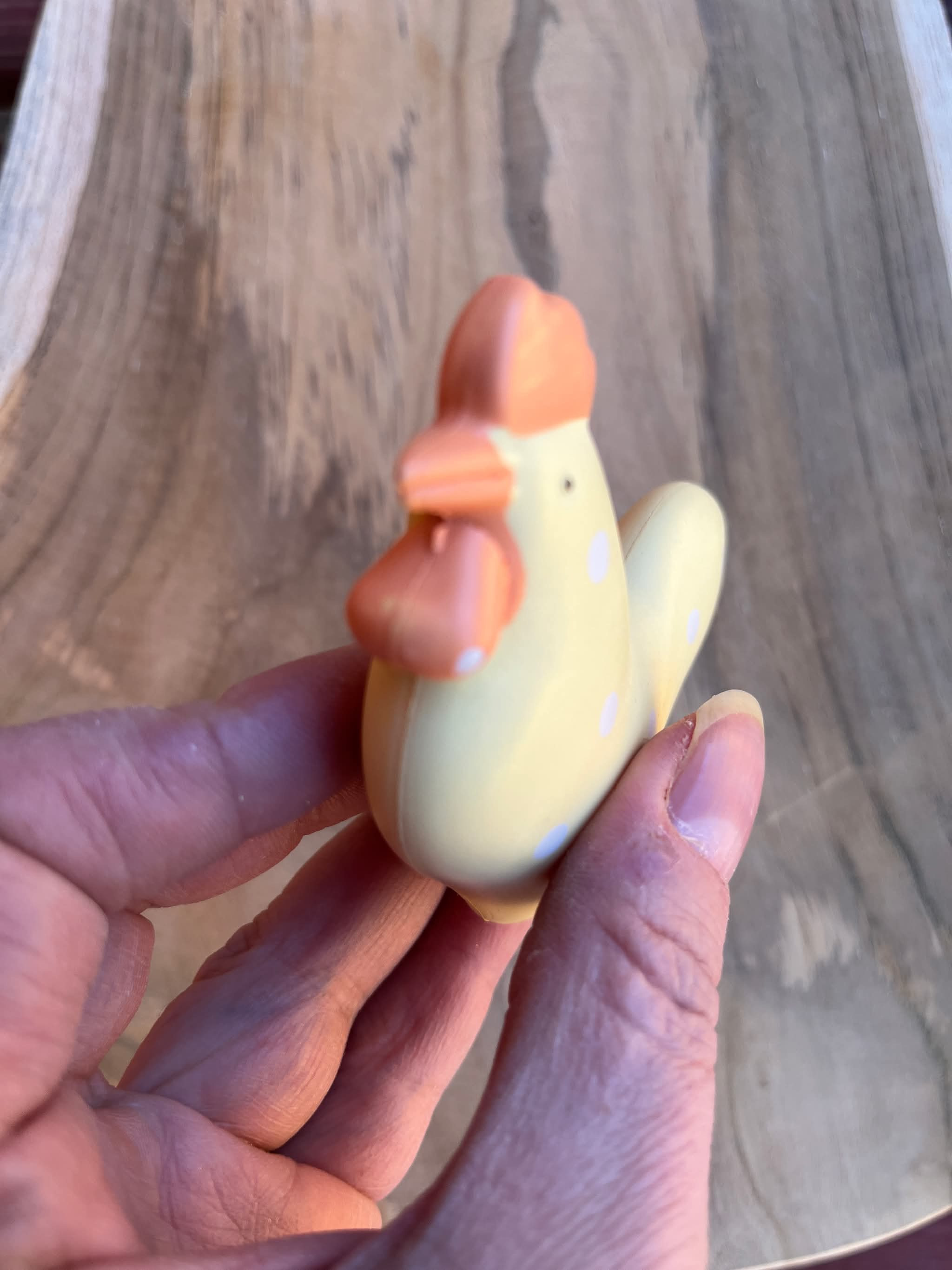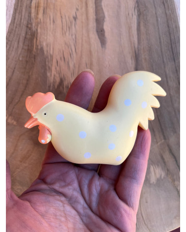 Plastový kohútik v jemne žltej farbe s bielymi bodkami.