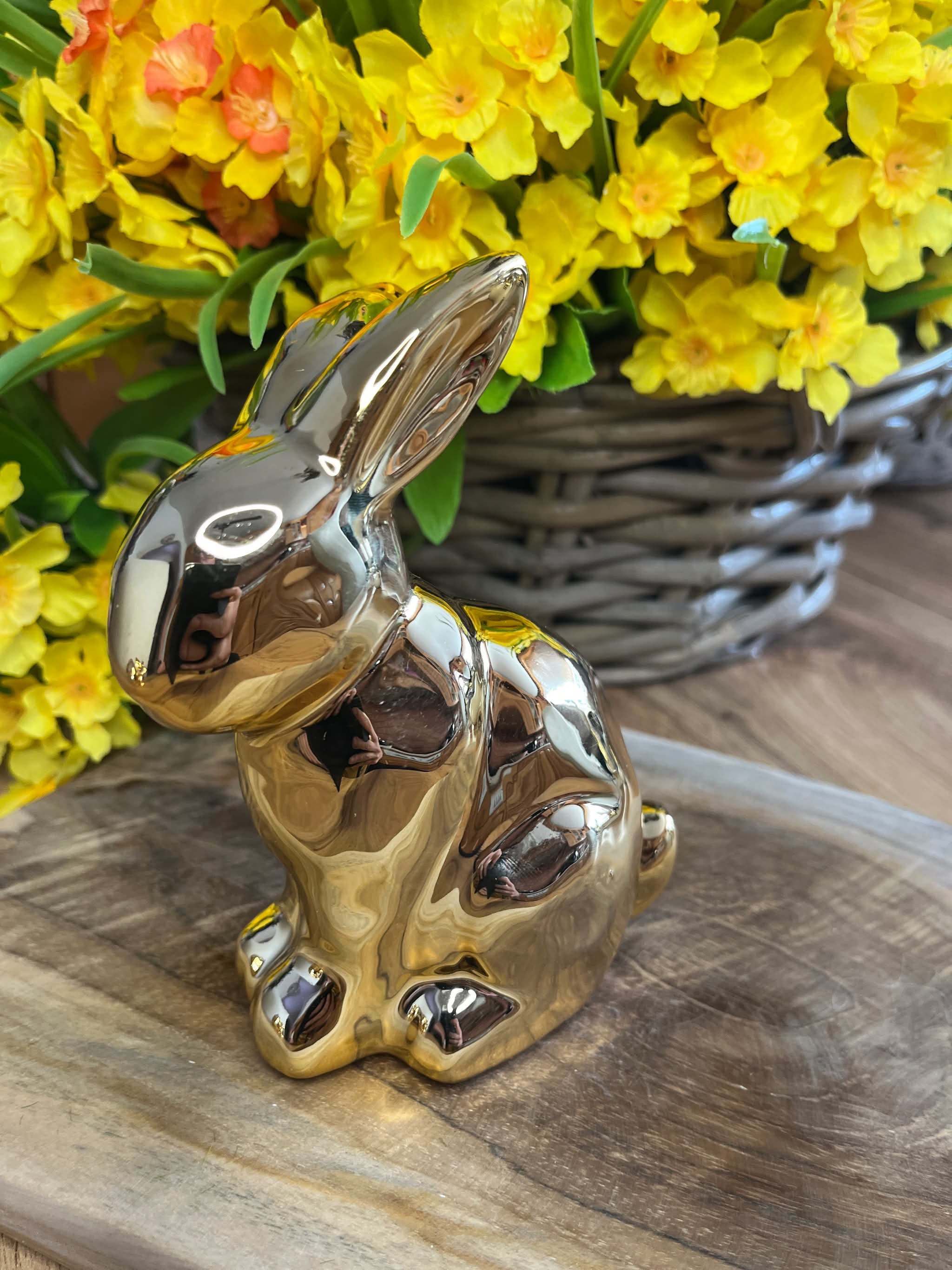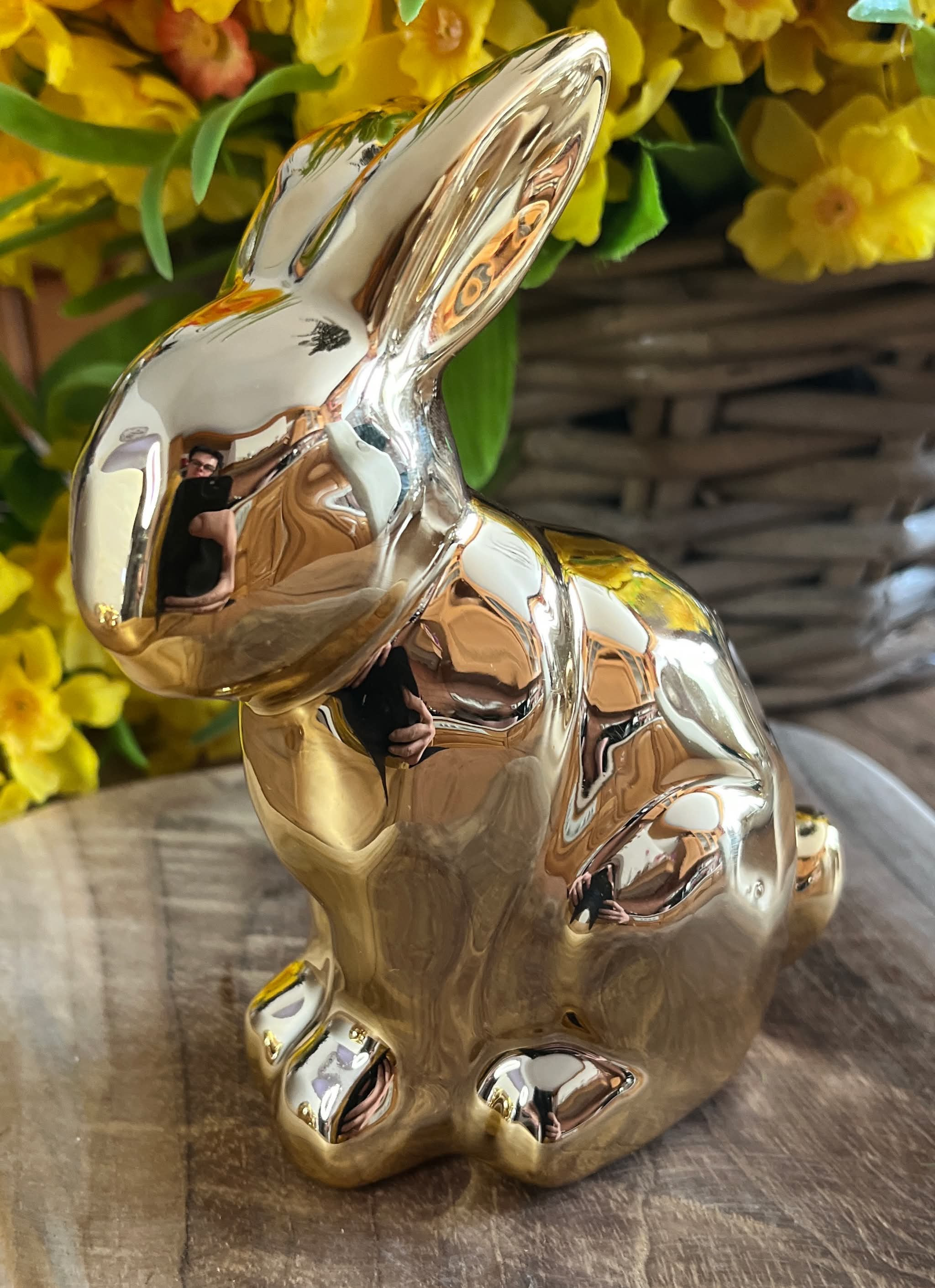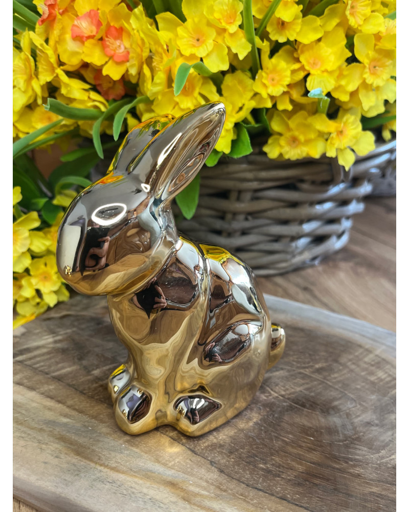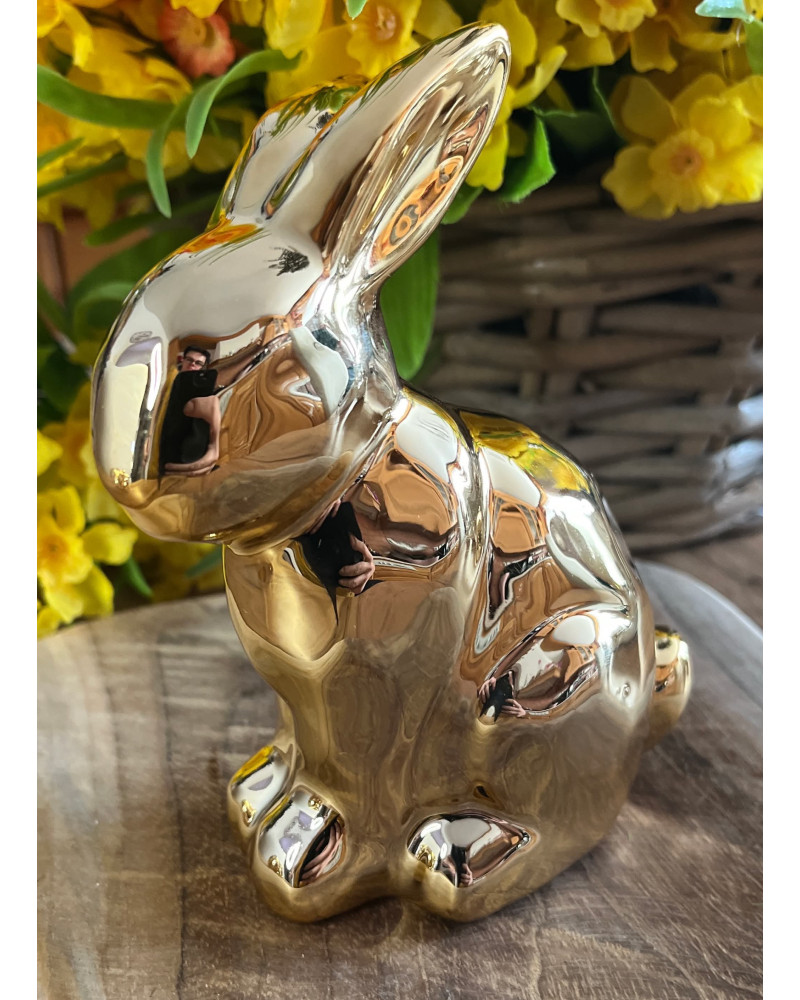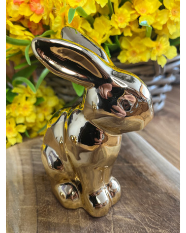 Keramický zajko v zlatej lesklej farbe.