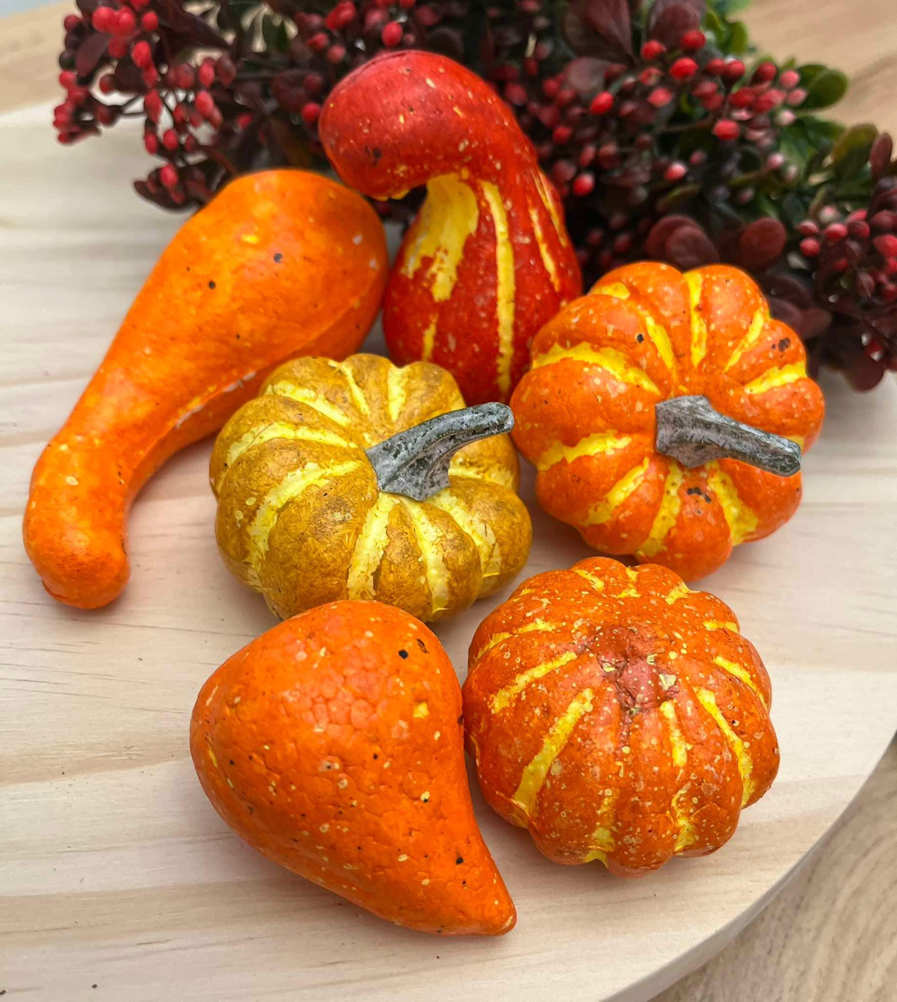 Sada tekvičiek z polystyrénu vo výške od 5 do 10 cm. V sade je 6 kusov.