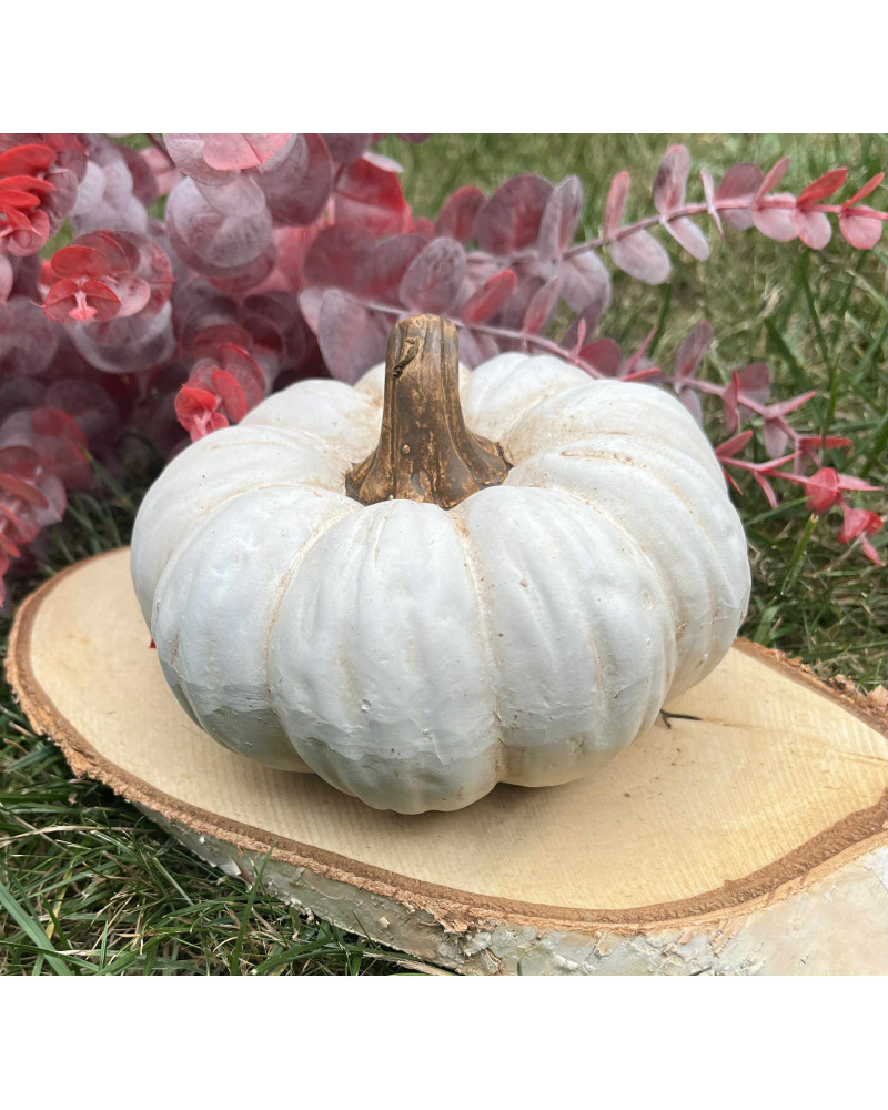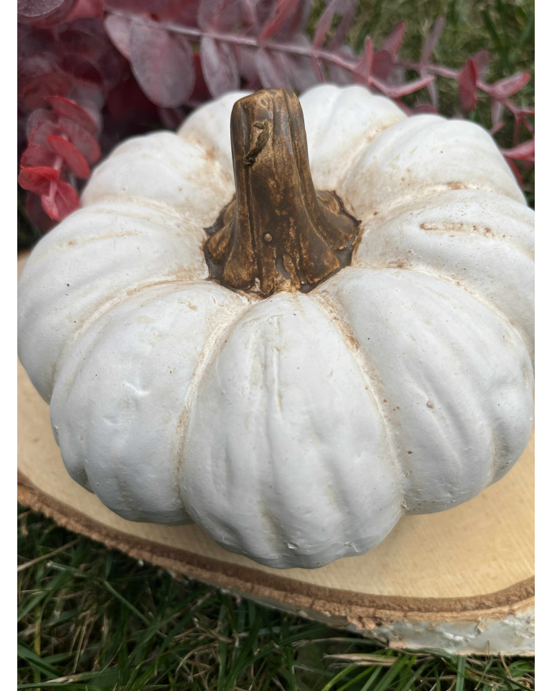 Veľmi pekná keramická tekvica maslovej farby, matná s hnedou stonkou.