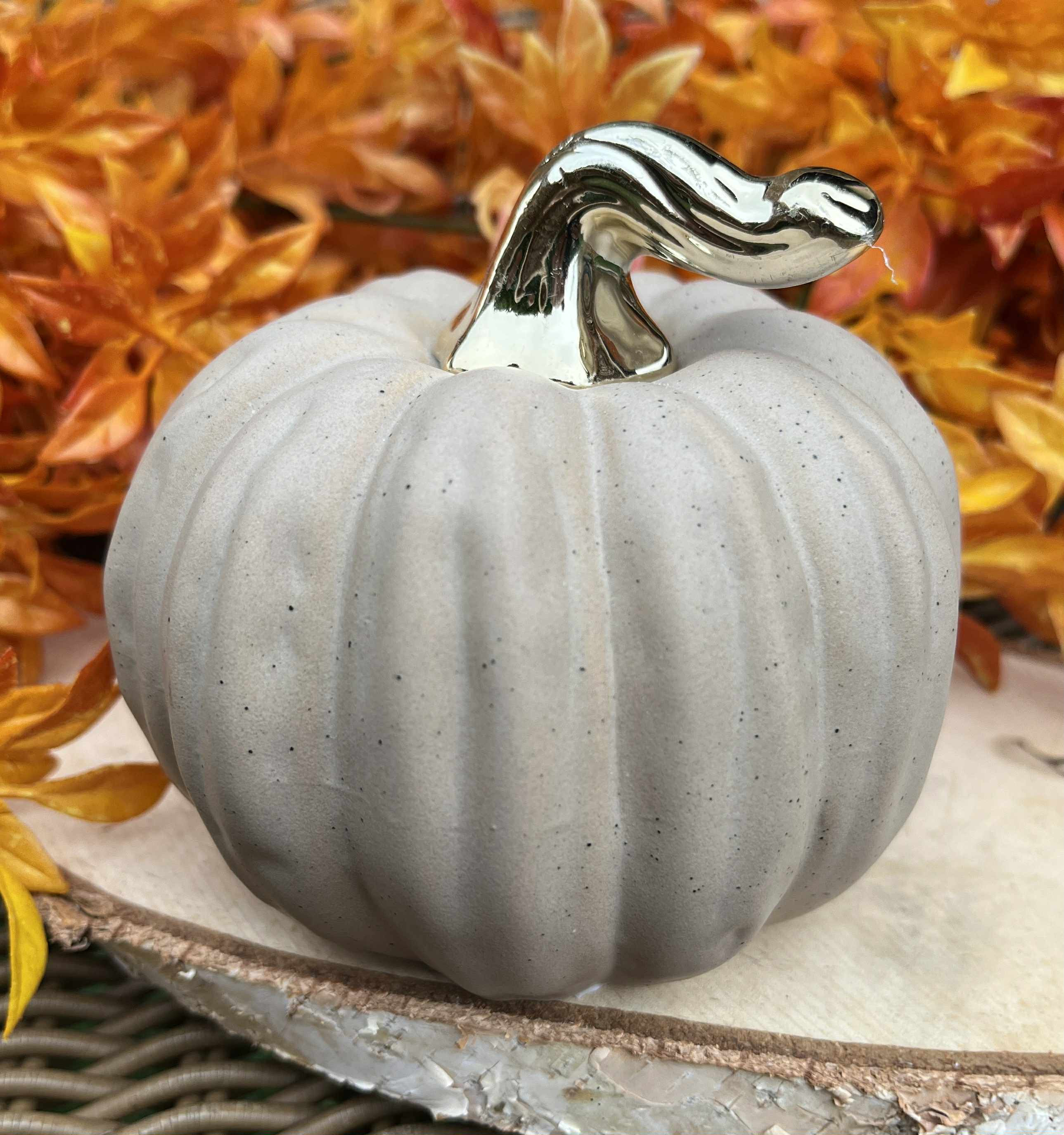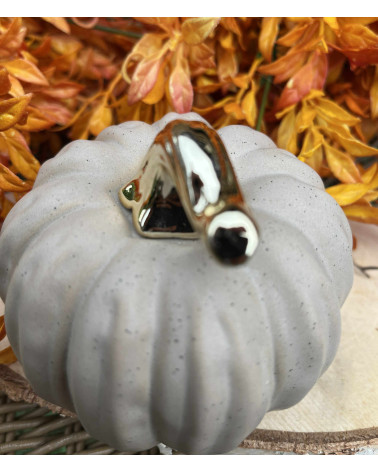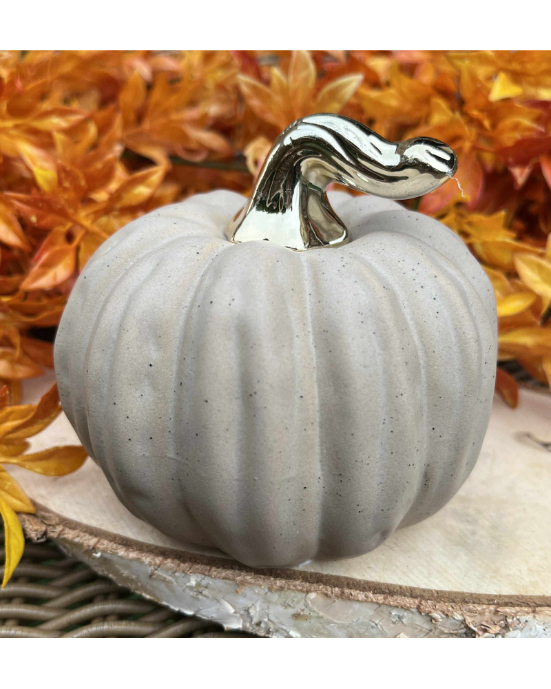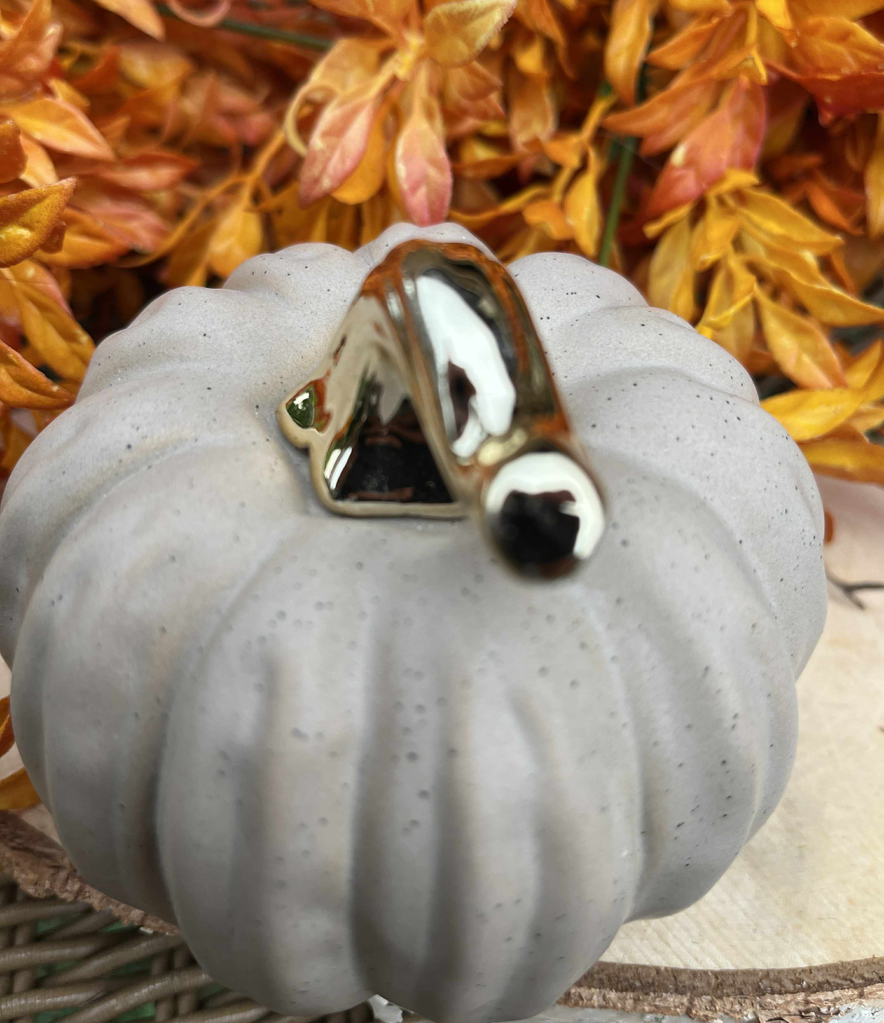 Tekvica z keramiky v matnej glazúre s lesklou zlatou stonkou v béžovej farbe.