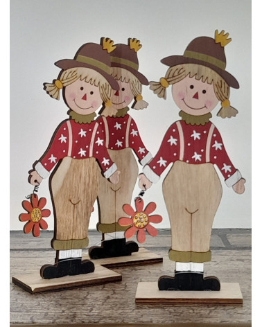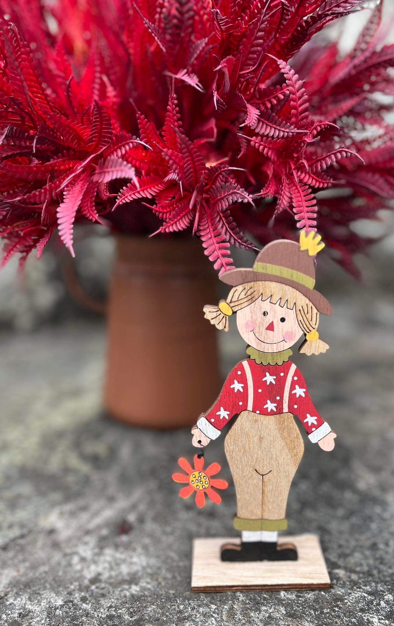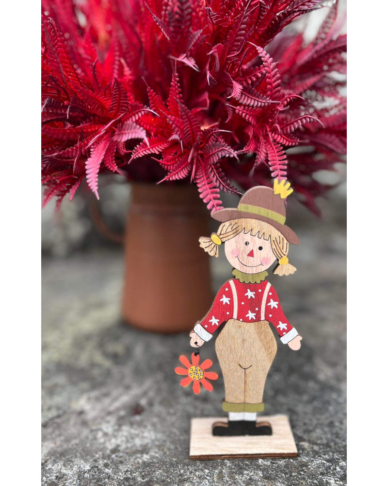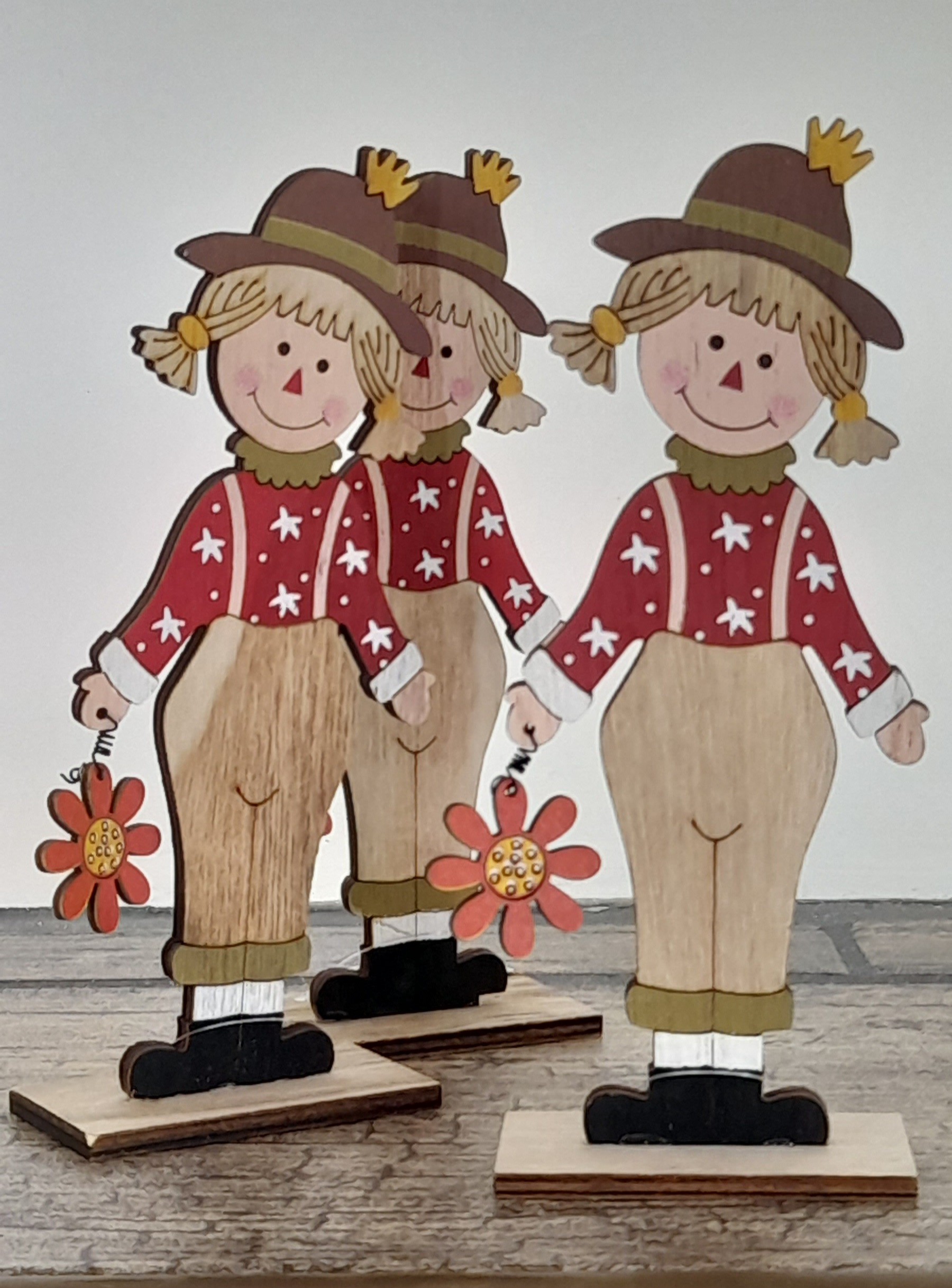 Dievčatko z dreva na drevenej podložke, výška 18 cm, dĺžka 8 cm