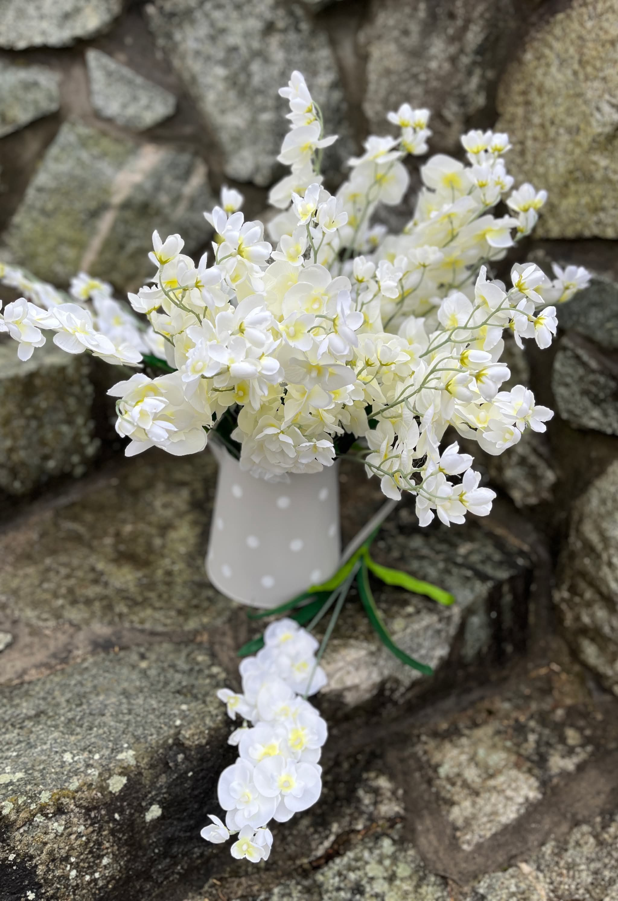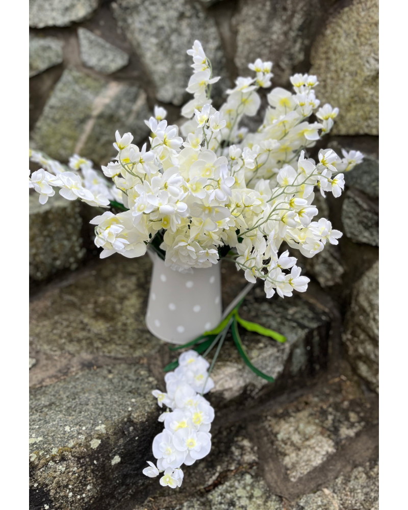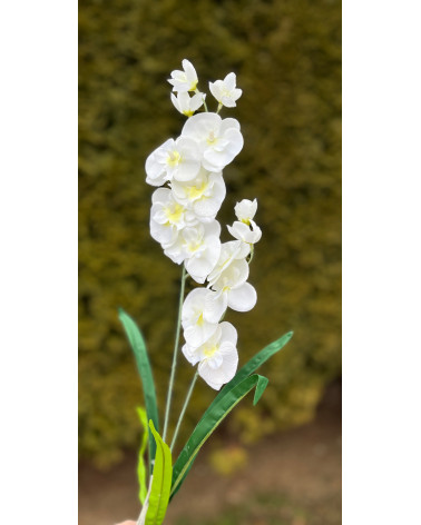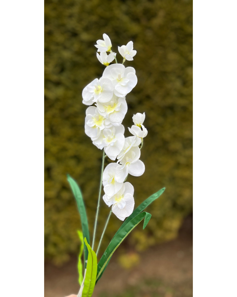Kusová stonka bielej orchidea s lístkami.