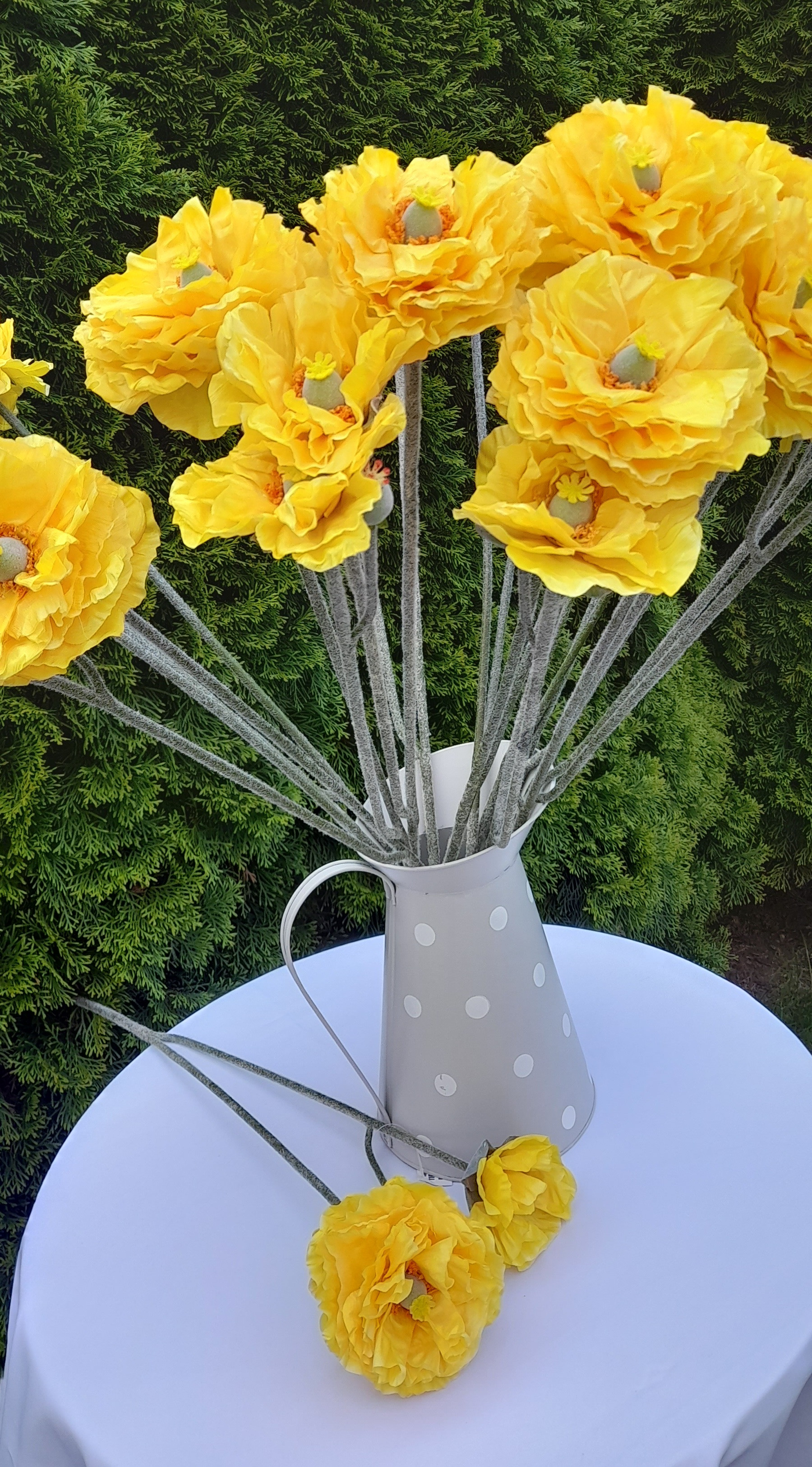 Mak žltý, na trse sú 2 kvety plus puk, výška 80 cm