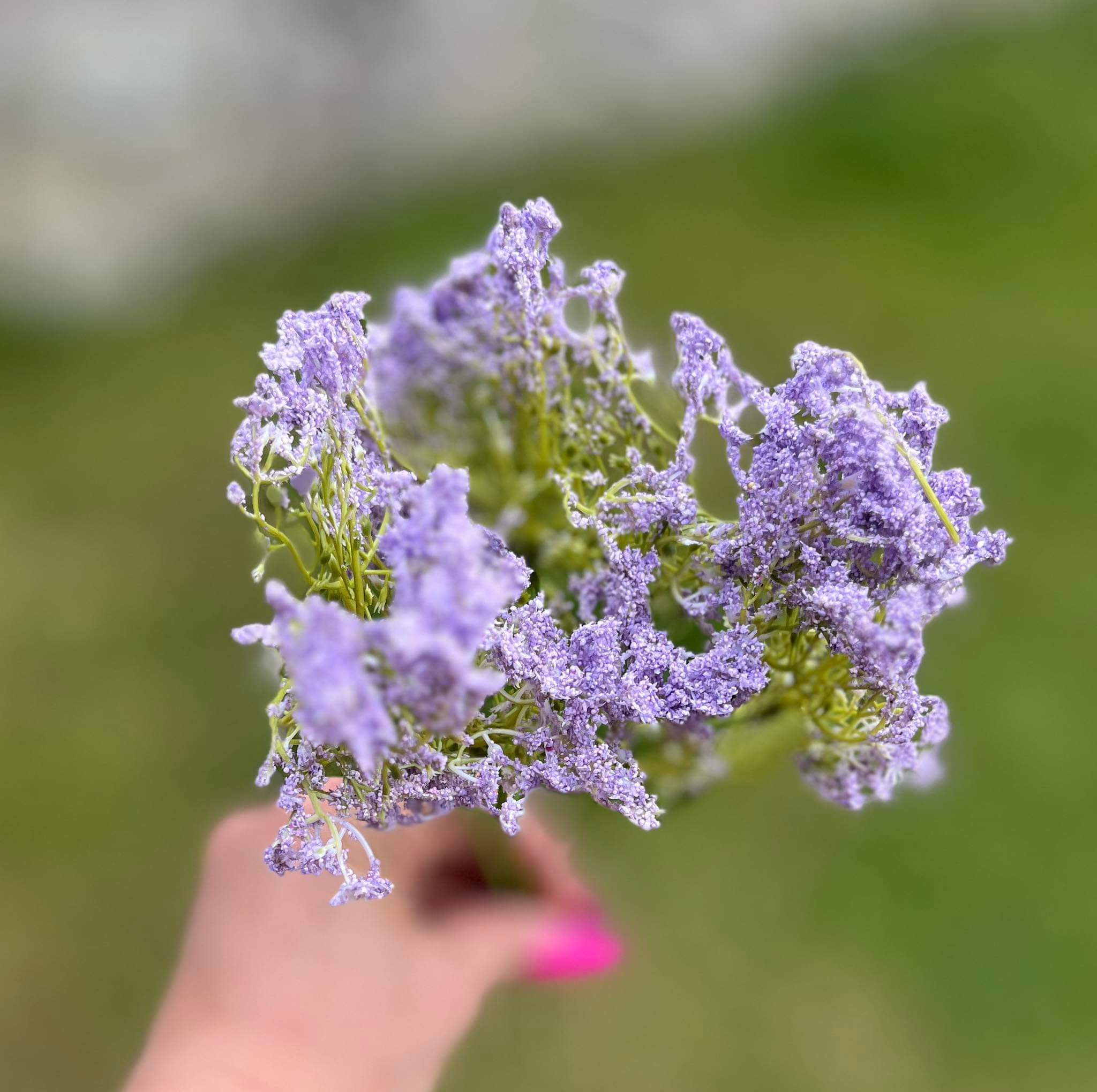 Jemná lúčna tráva vo fialkovej farbe. Cena je jednu byľ ako je na fotke.
