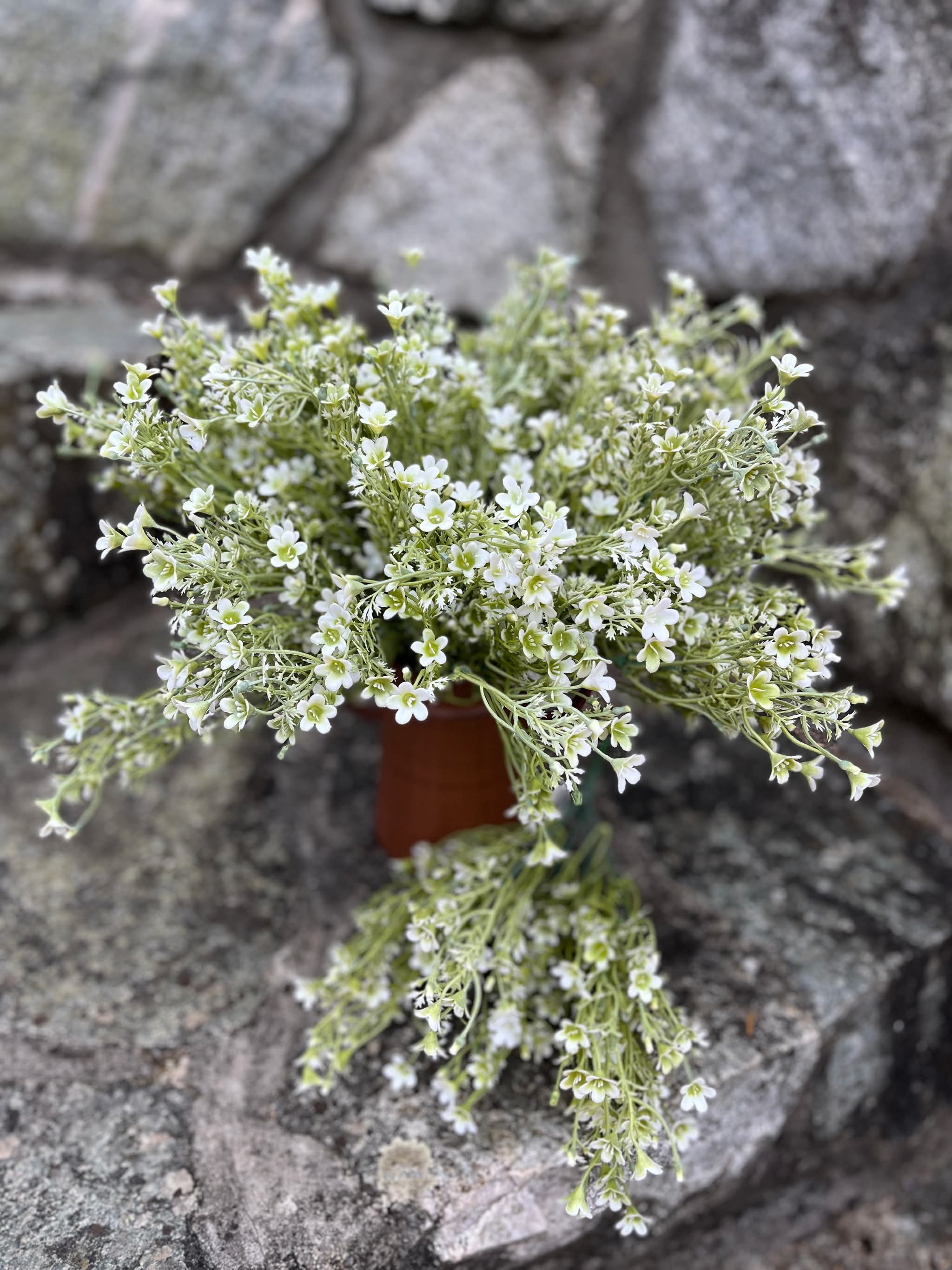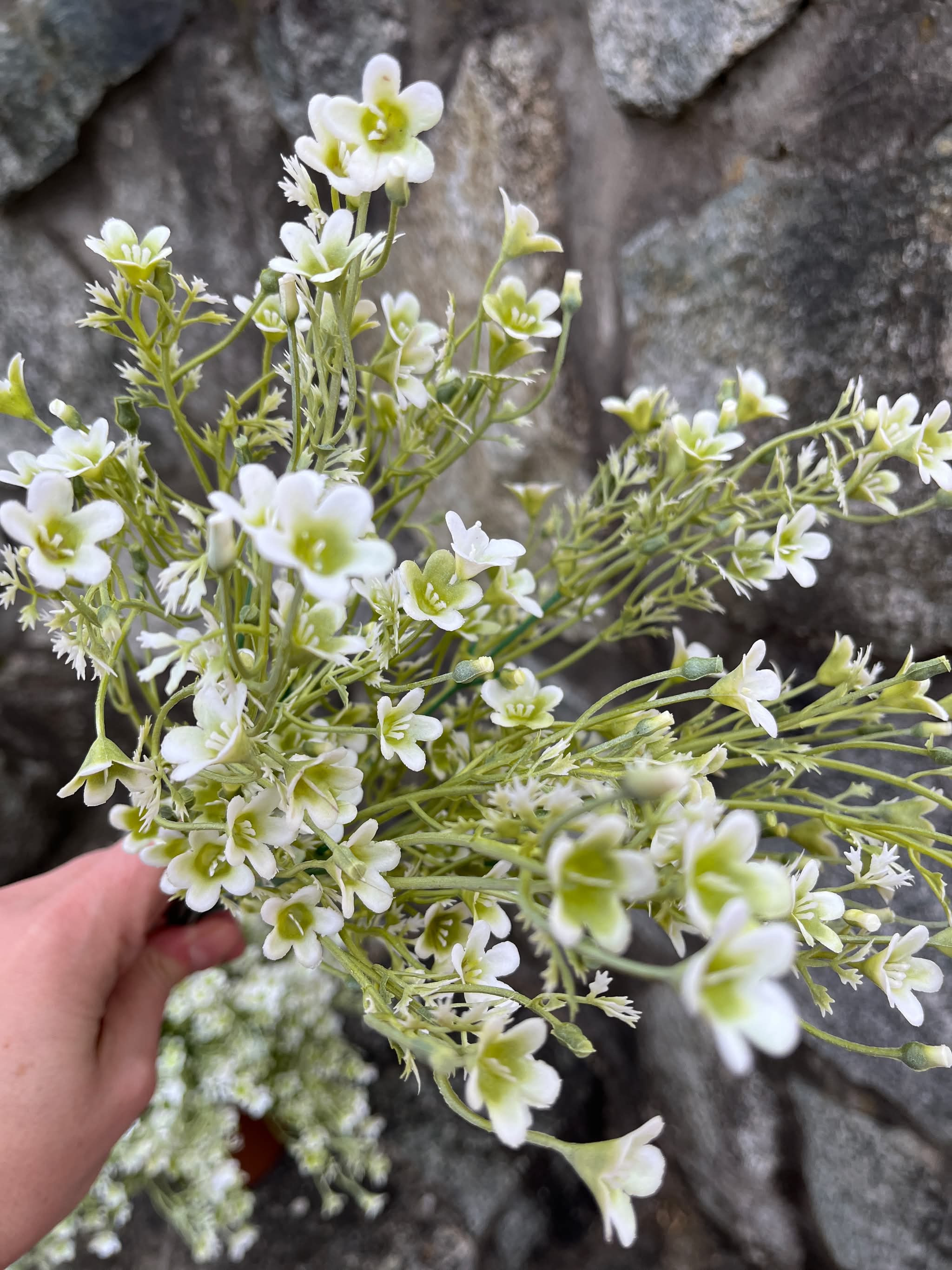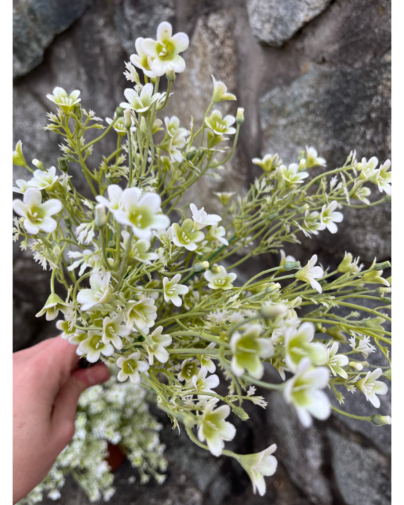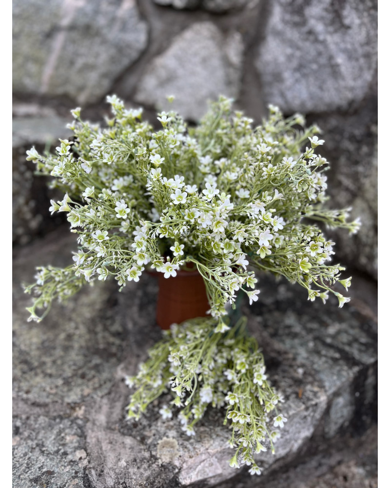 Trs drobných jemných kvietkov v bielej farbe.
