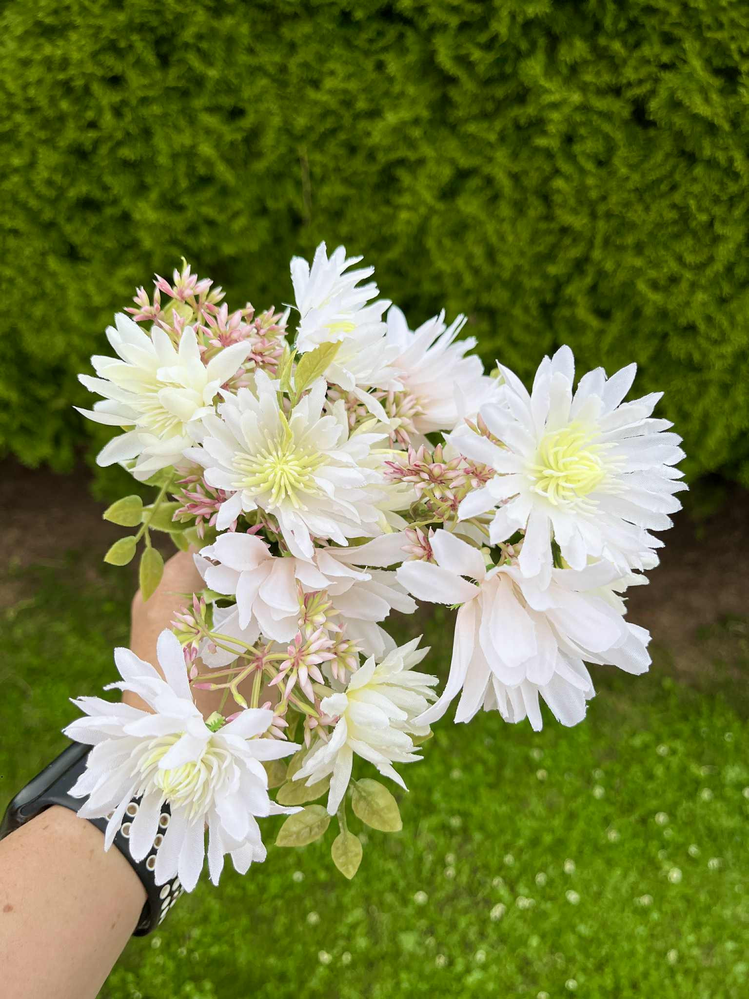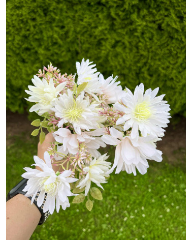 Kytička strapatých chryzantém v biele alebo fialkovej farbe.