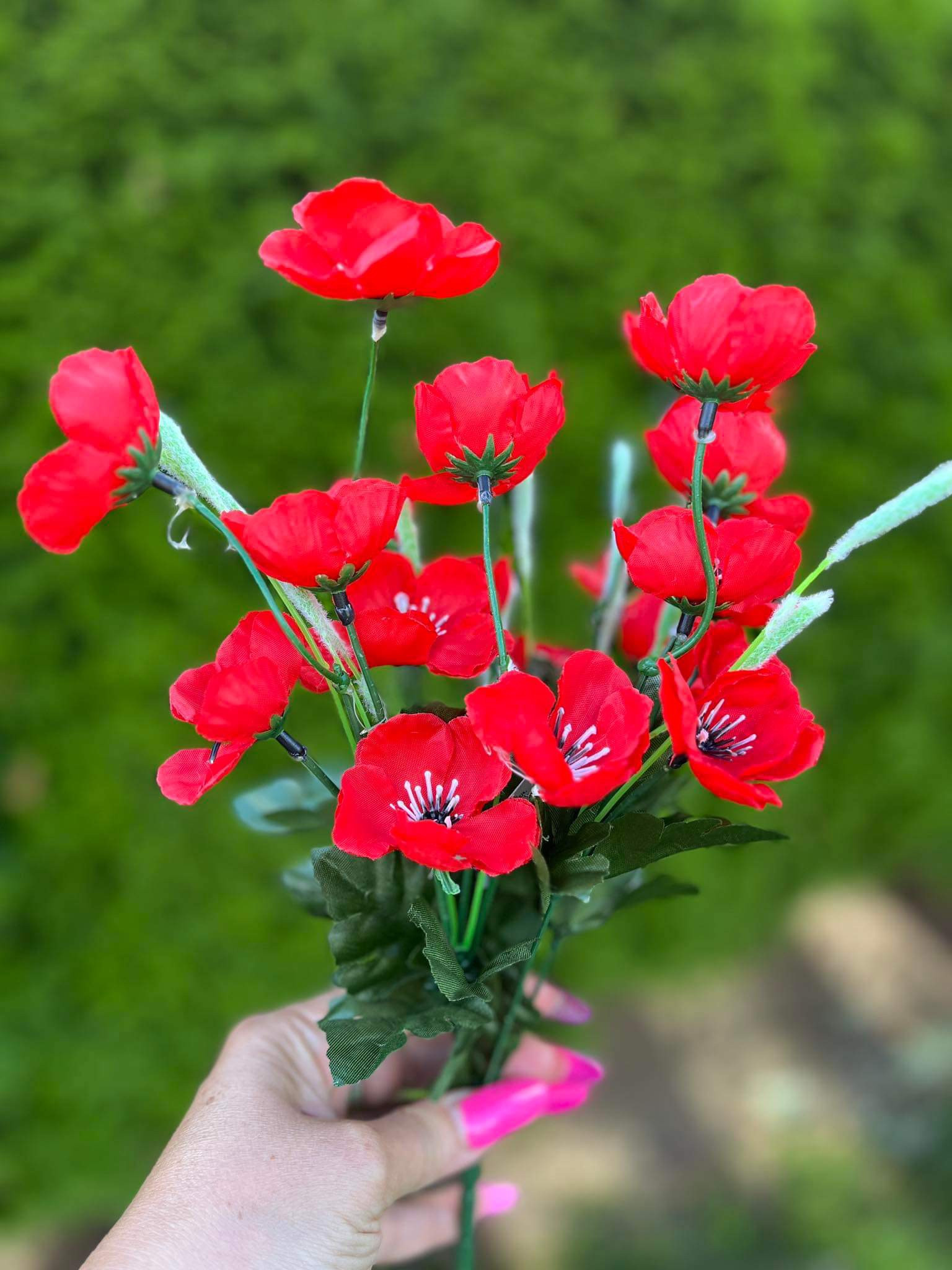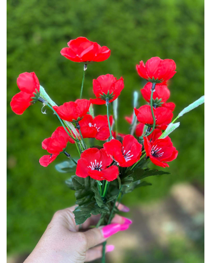 Kytica sýtych červených kvetov, 21 kvietkov v kytičke, výška 39 cm, 7 stoniek