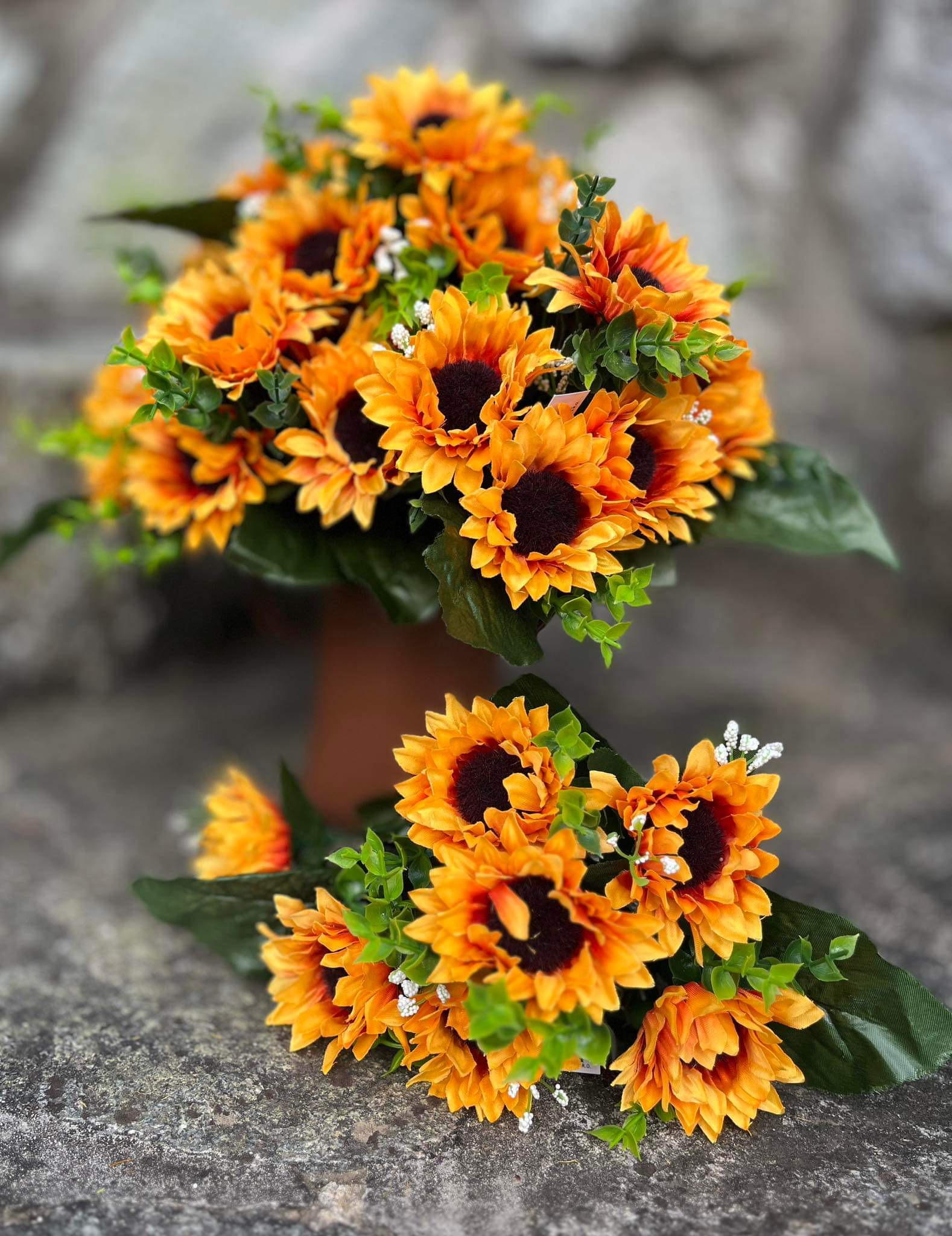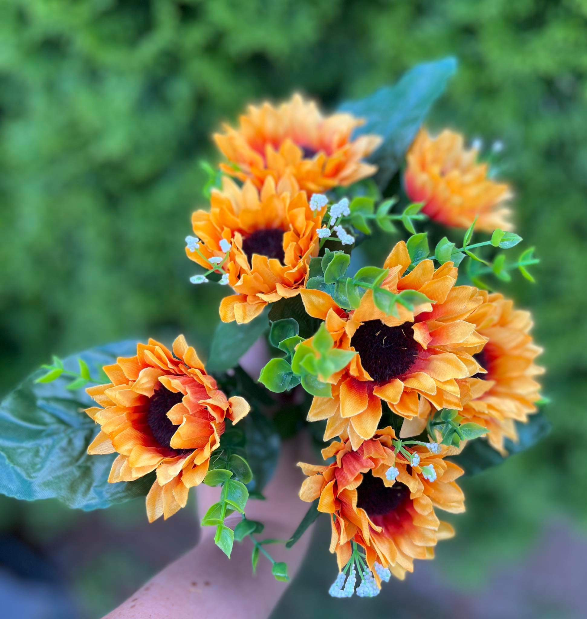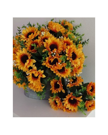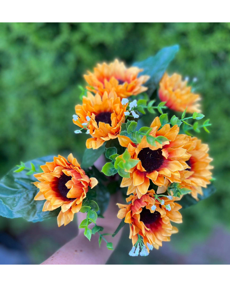 Kytička slnečníc doplnená o jemné biele kvietky, 7 kvetov, výška 29 cm, 7 stoniek