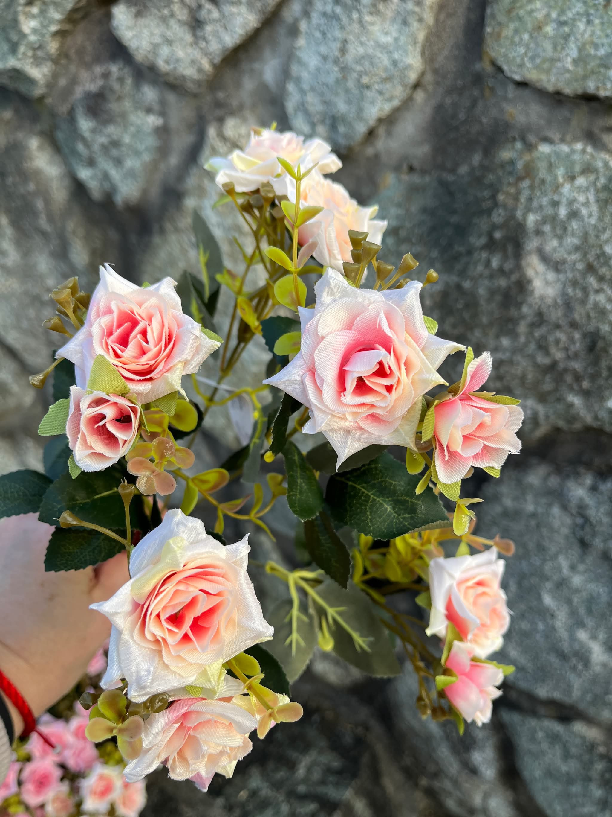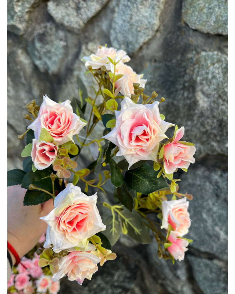 Kytička šípových ružičiek v štyroch farbách, bielej, maslovej s ružovým stredom, jemne ružovej a ružovej farbe. Dĺžka kytičky je 33 cm, 5 stoniek, 10 kvietkov menšie aj väčšie.