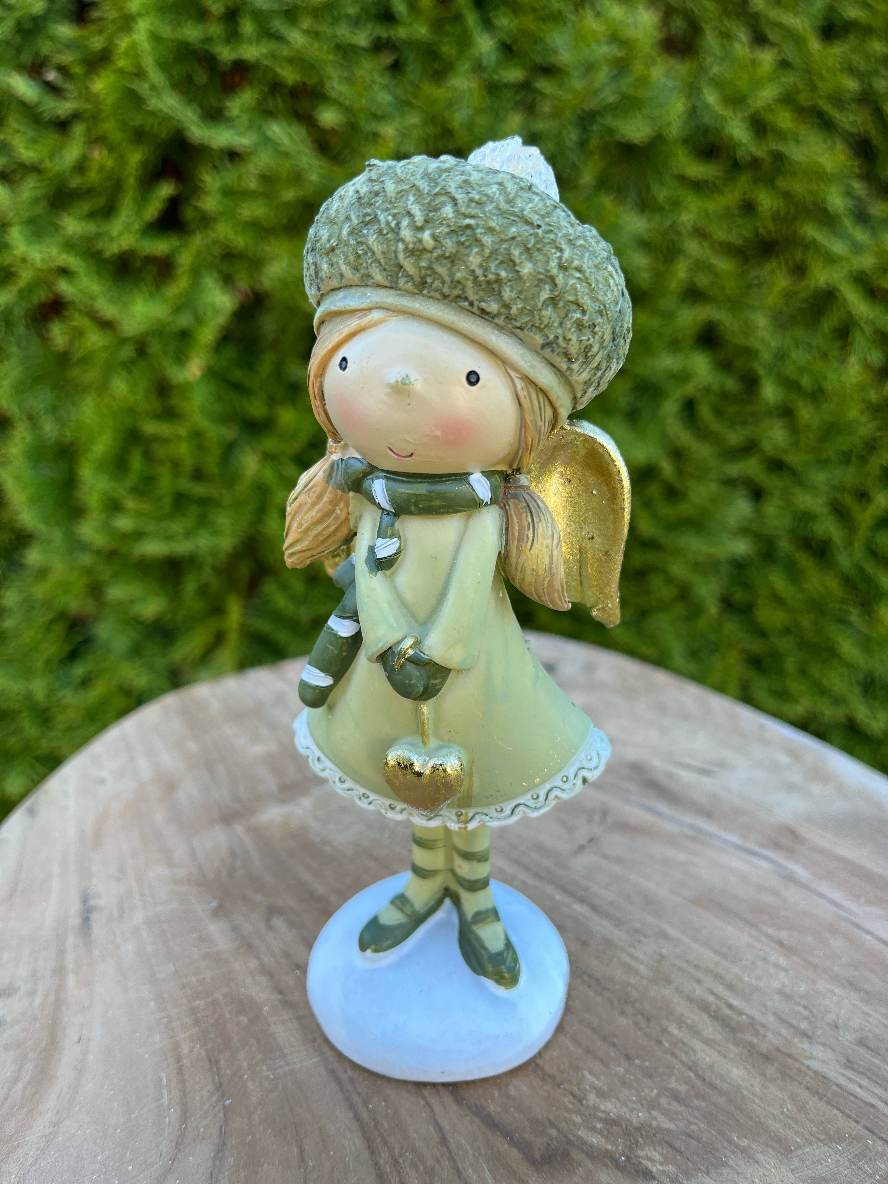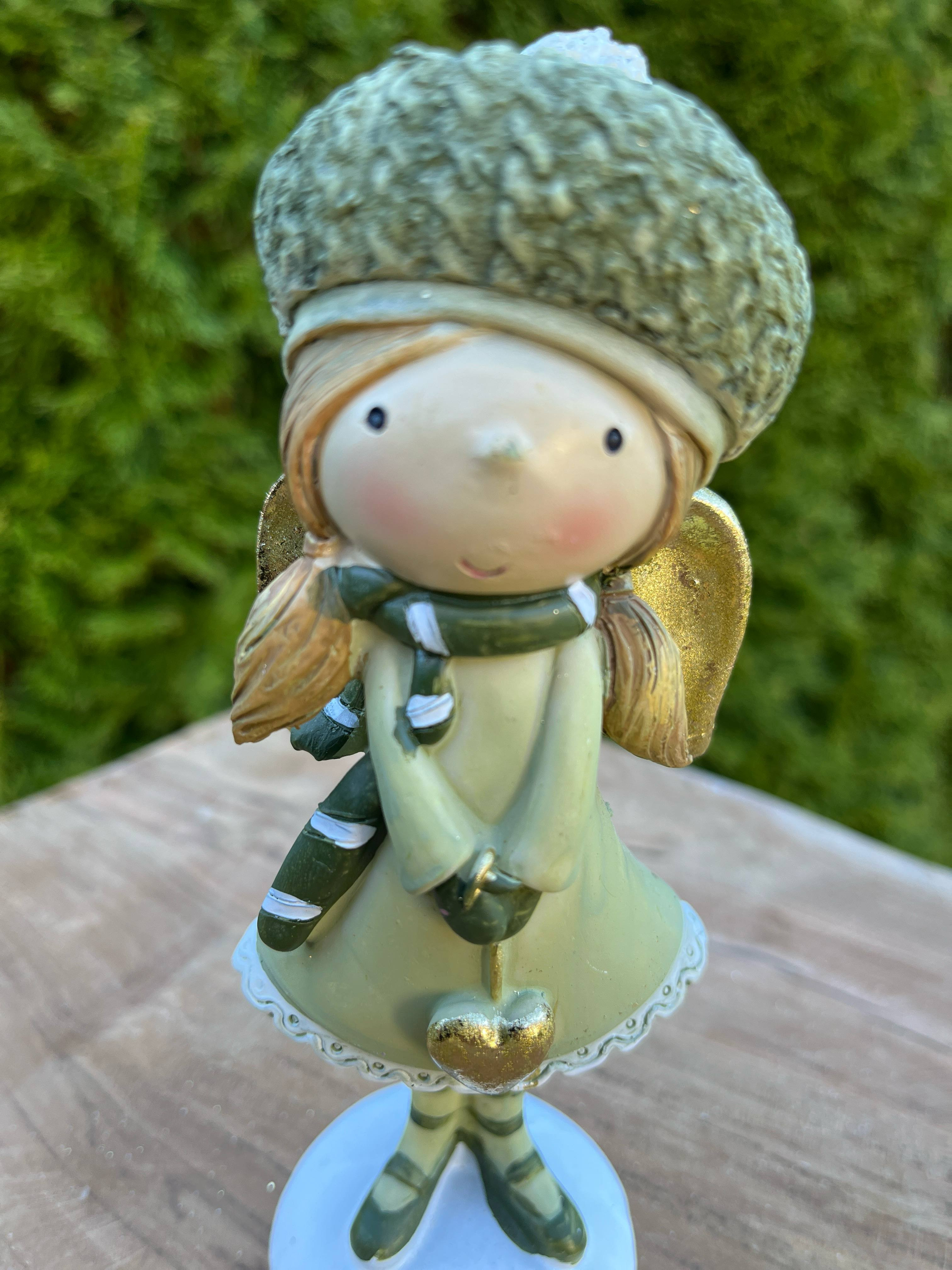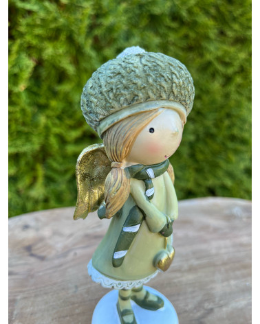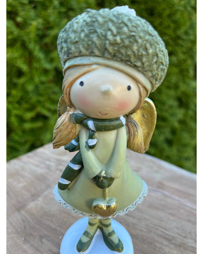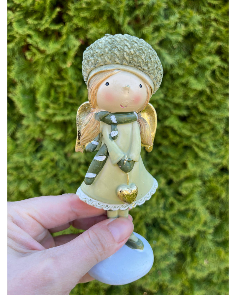 Anjelik z polyrezinu v príjemnej zelenej farbe so zlatým srdiečkom a so zlatými krídlami.