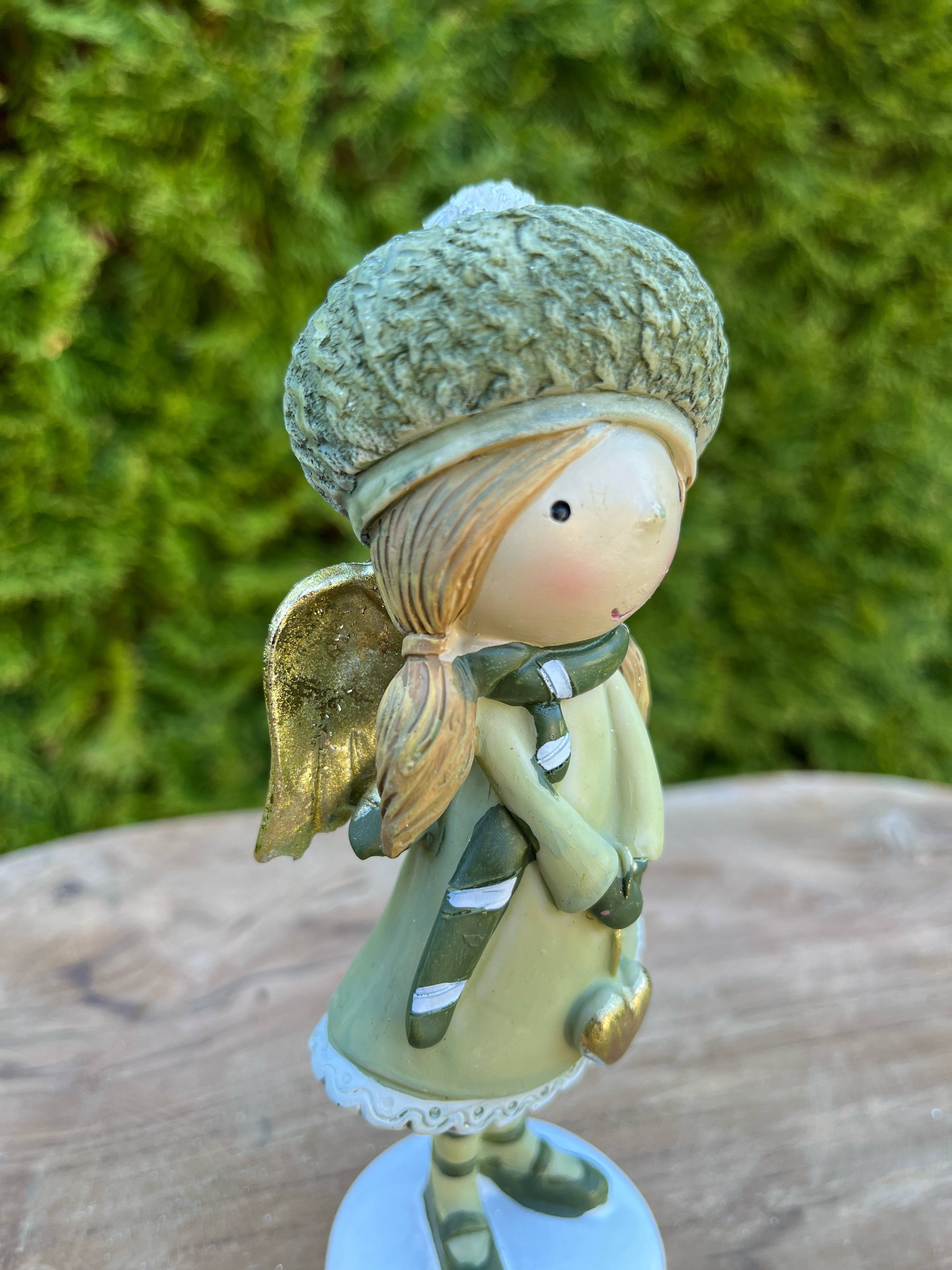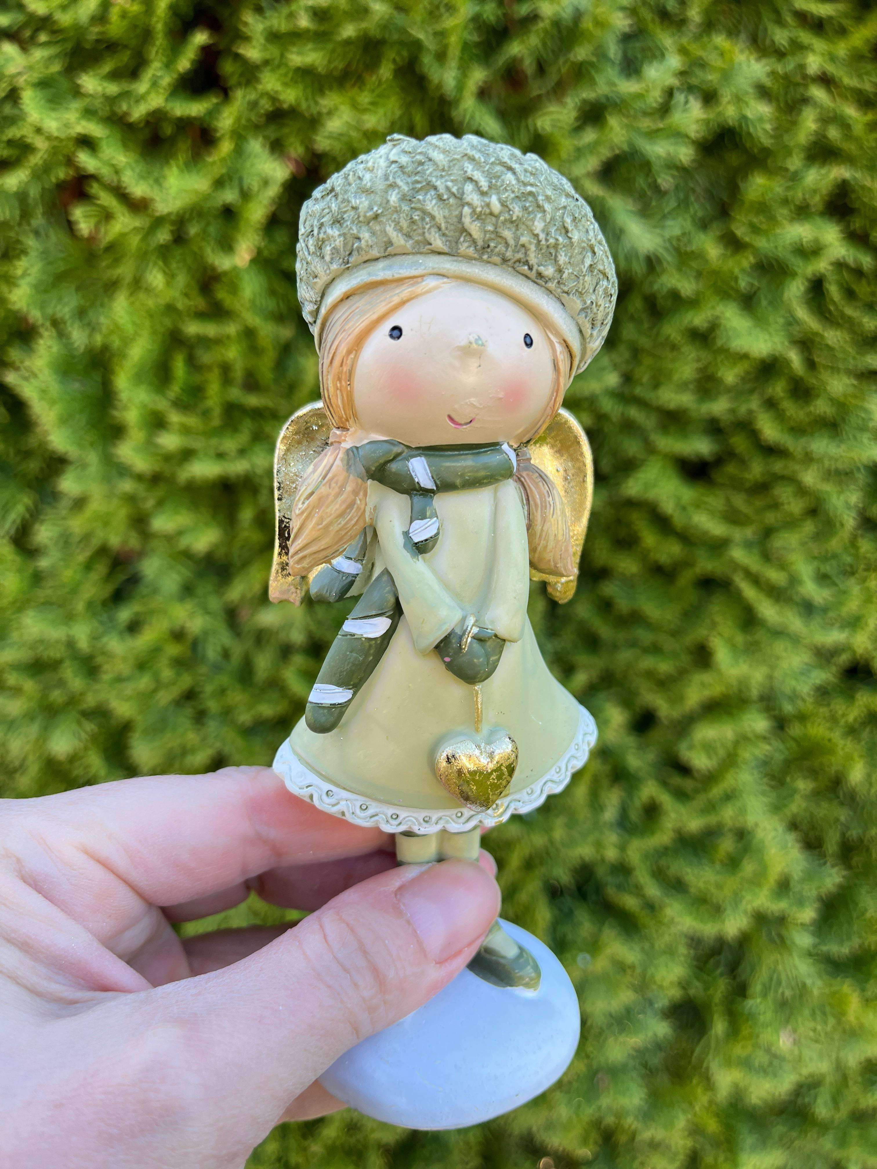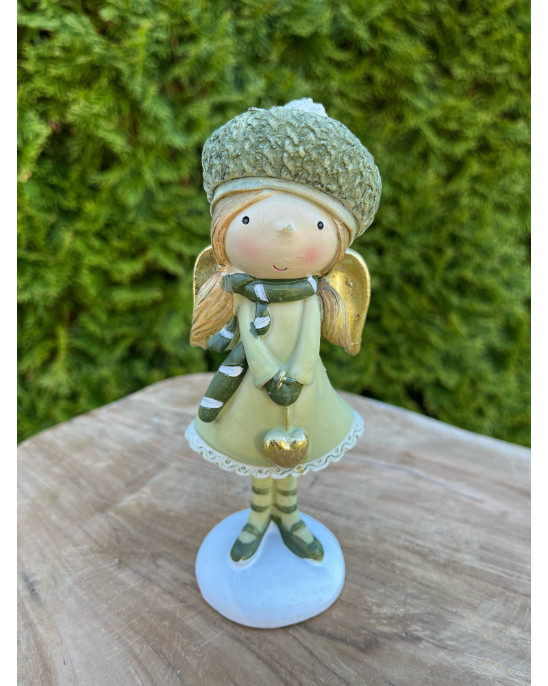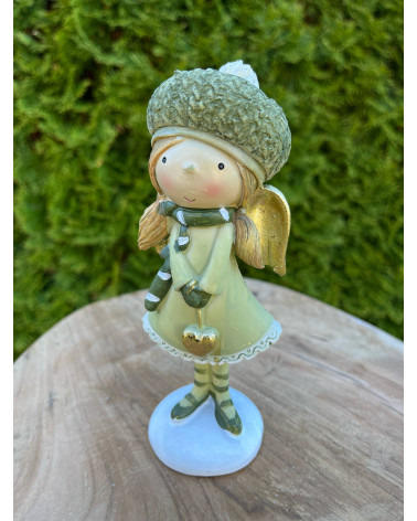 Anjelik z polyrezinu v príjemnej zelenej farbe so zlatým srdiečkom a so zlatými krídlami.