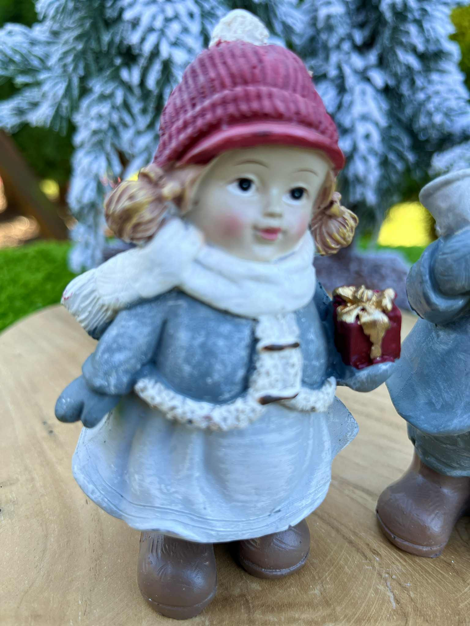 Krásne dievčatko v sivom kabátiku, s darčekom v ručičkách, do párika si viete priobjednať chlapčeka.