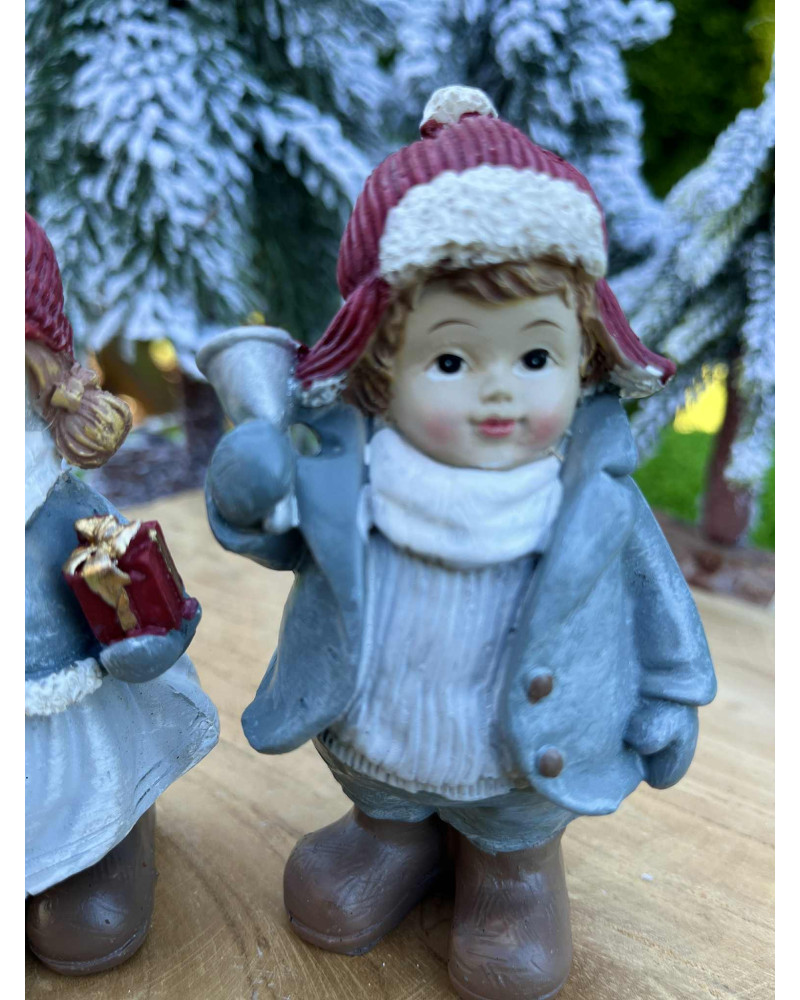 Krásny chlapček v sivom kabátiku a čiapke so zvončekom v ruke. Do parika sa dá priobjednať dievčatko.